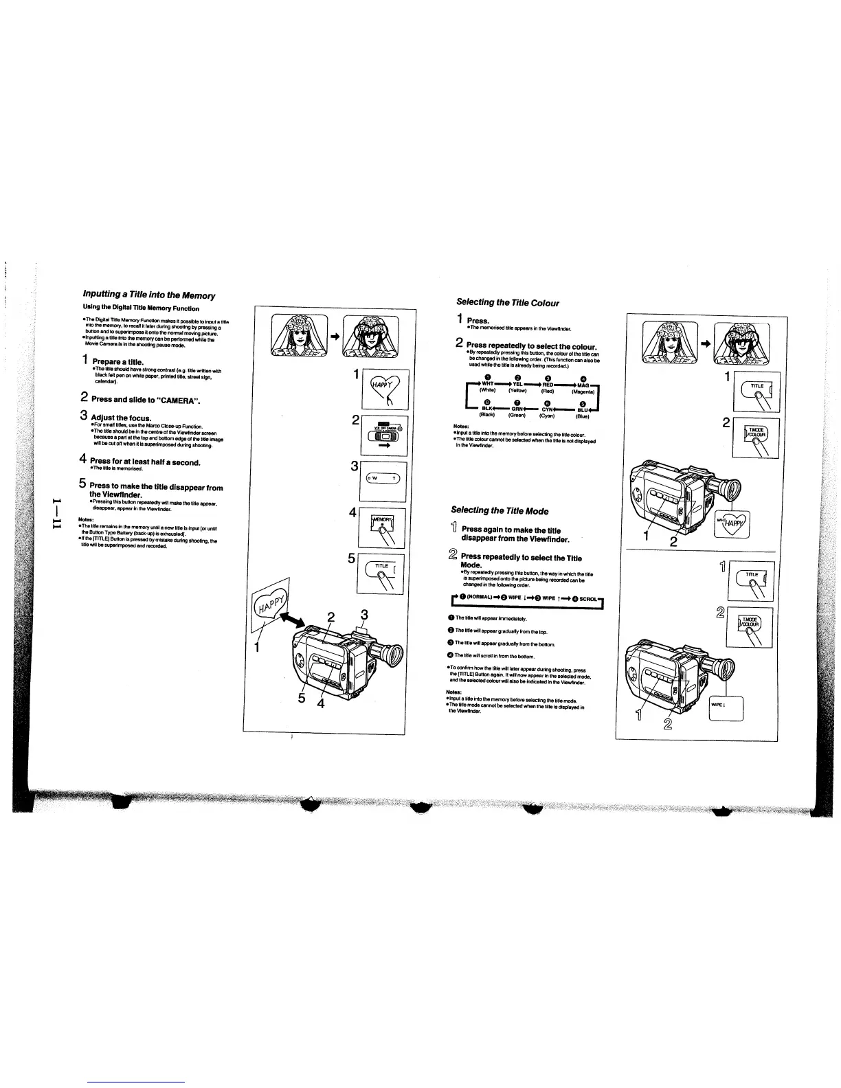 Panasonic NV-S6B - Digital Title Features; Inputting and Storing Titles; Title Colour and Mode Selection