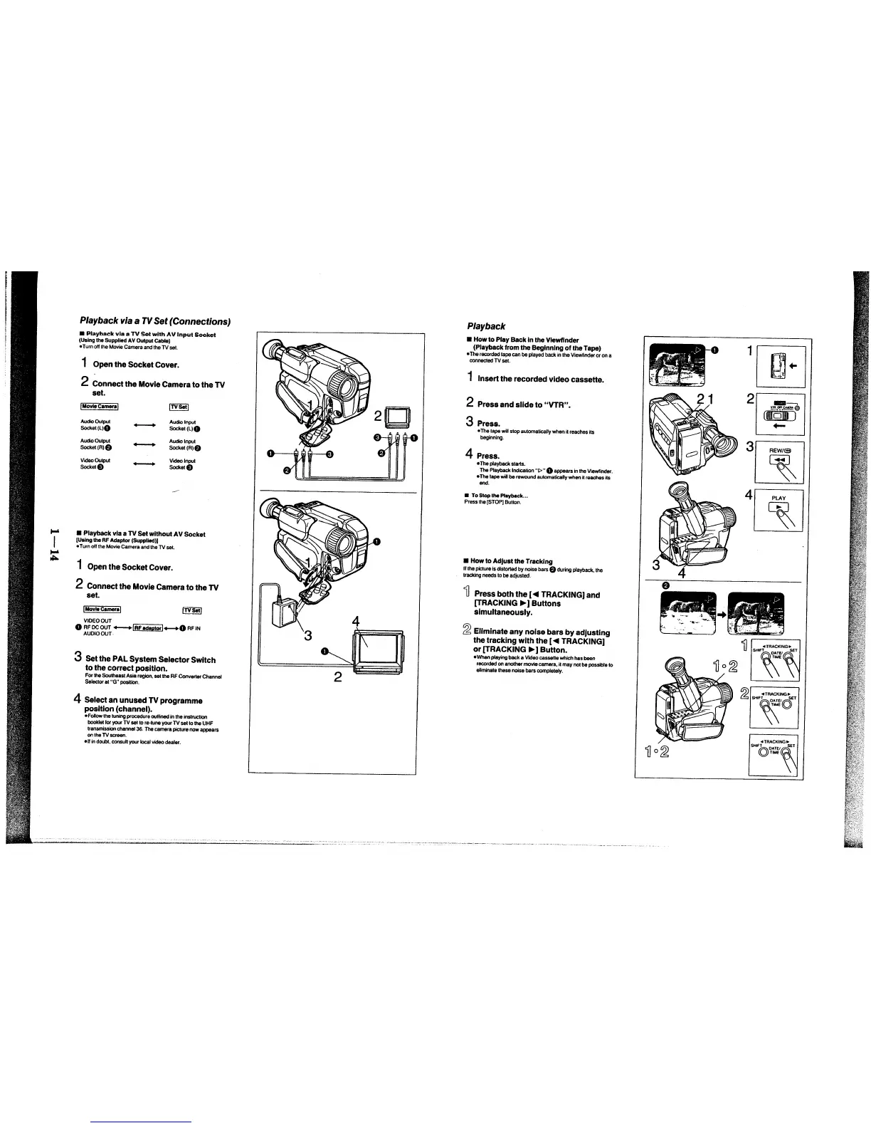 Panasonic NV-S6E - TV Playback Connections and Operation; Playback via AV Input Socket; Playback via RF Adaptor; How to Play Back in the Viewfinder