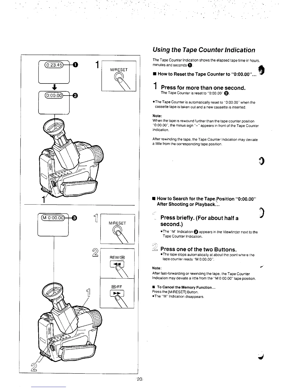 Panasonic NV-S8A - Using the Tape Counter Indication; How to Reset the Tape Countro to 0:00.00; How to Search for the Tape Position 0:00;00 after Shooting