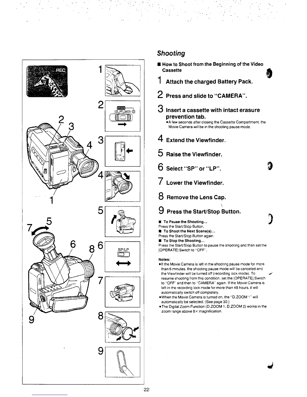 Panasonic NV-S8A - Shooting; How to Shoot from the Beginning of the Video Cassette
