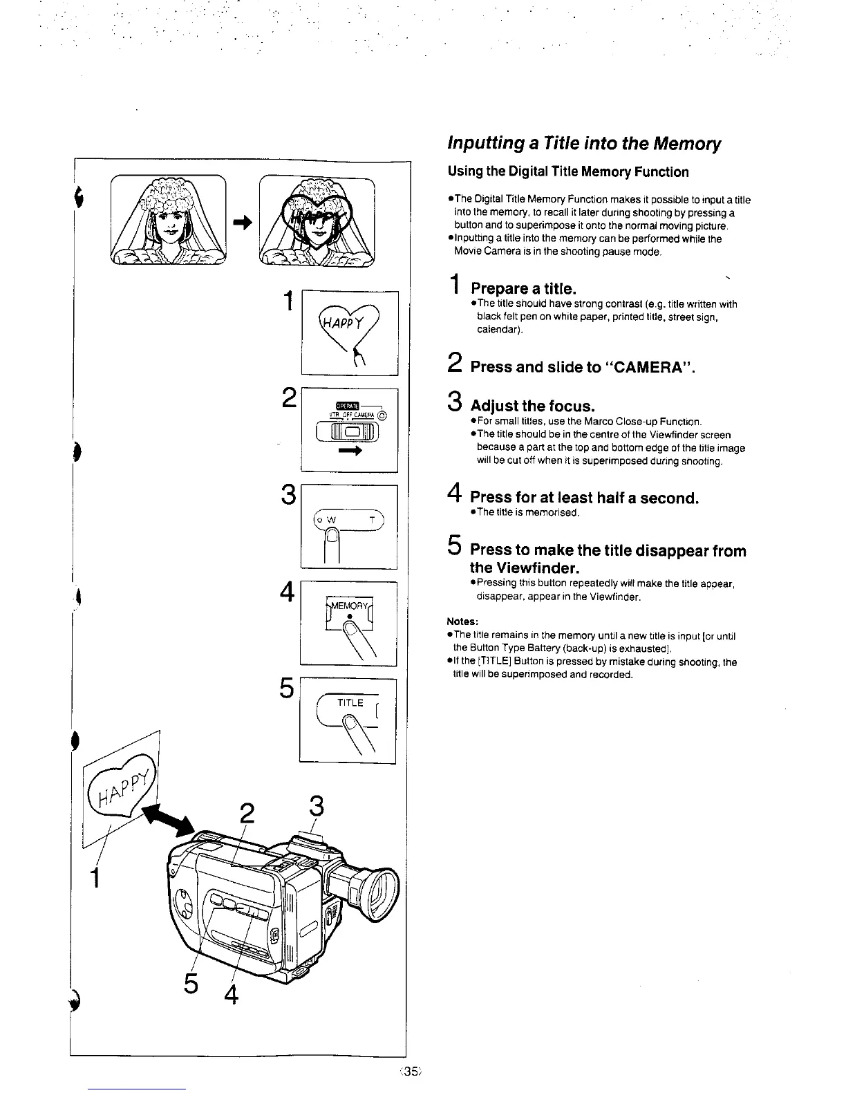 Panasonic NV-S8A - Inputting a Title into the Memory; Using the Digital Title Memory Function