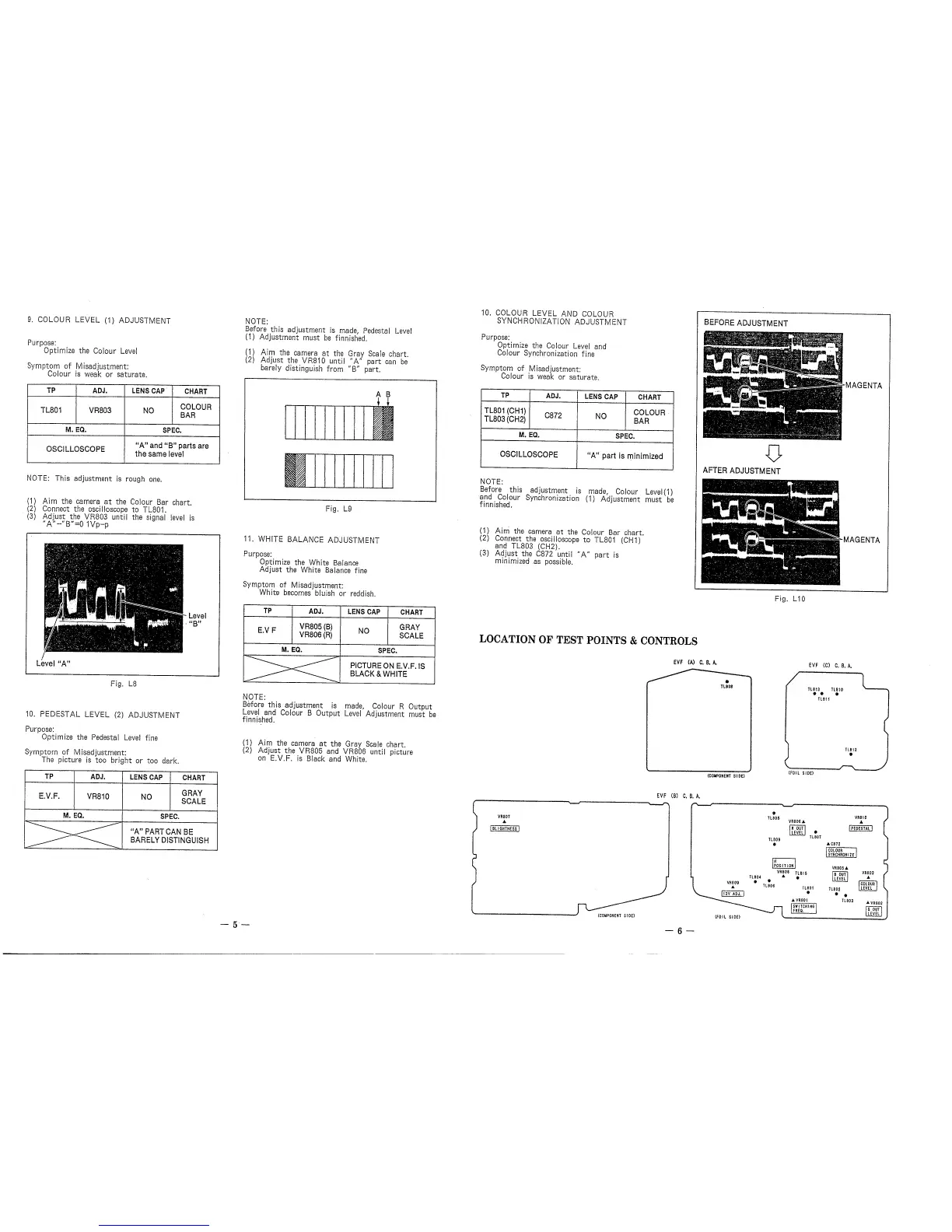 Panasonic NV-S8E - Location of Test Points & Controls; Colour Level Adjustment; White Balance Adjustment