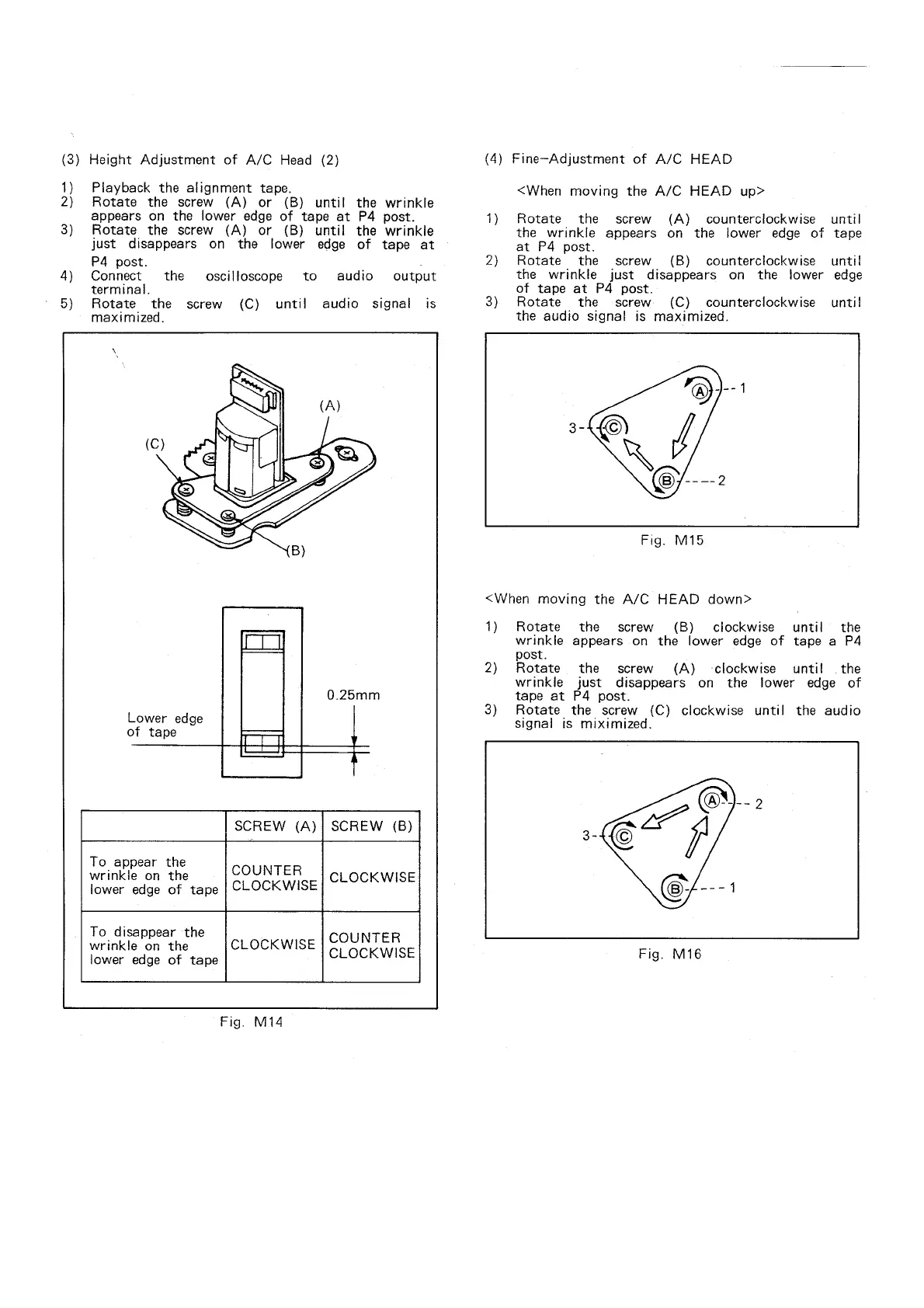 Panasonic NV-SD20EE - Fine-Adjustment of A;C Head; When Moving the A;C Head up; M14; M16