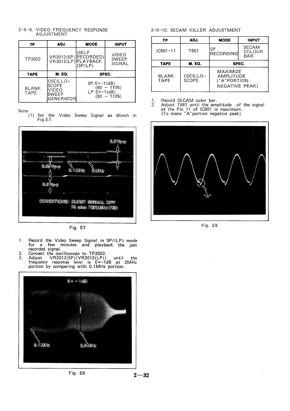 Panasonic NV-SD20EE - Video Frequency Response Adjustment; Secam Killer Adjustment; E7; E8