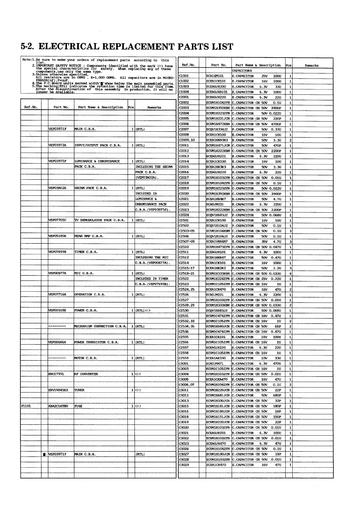 Panasonic NV-SD20EE - Electrical Replacement Parts List