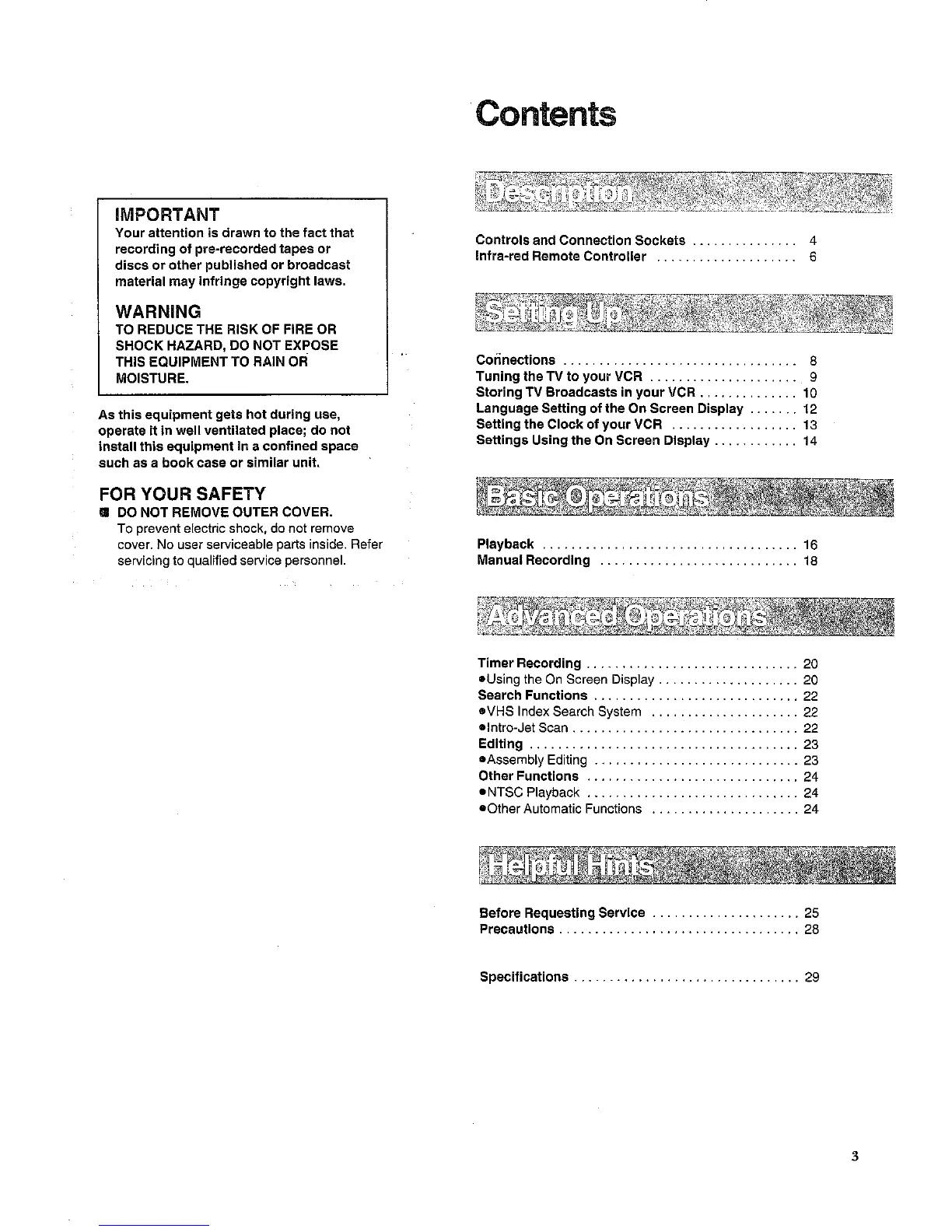 Panasonic NV-SD220A - Description; Setting Up; Basic Operations; Advanced Operations