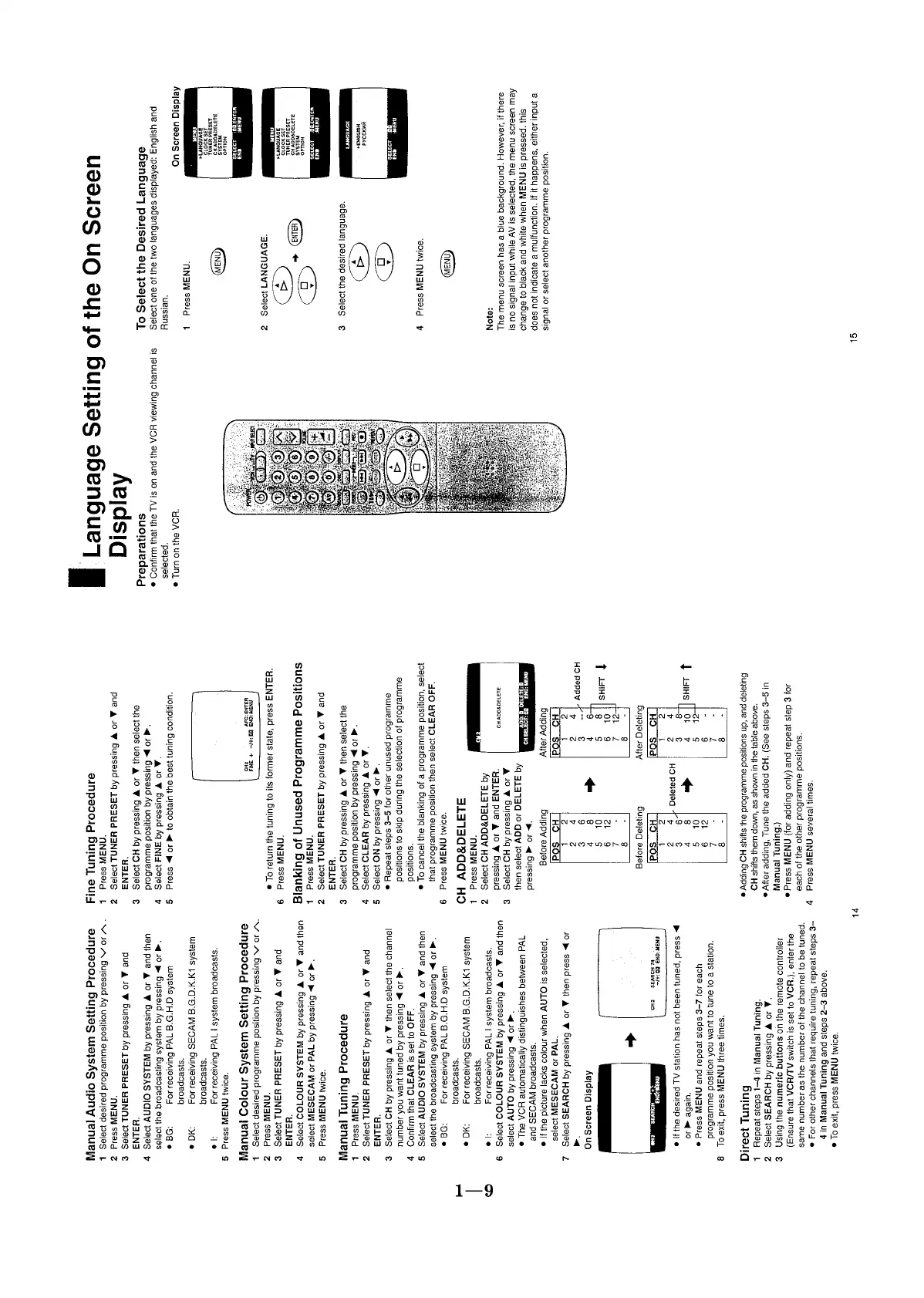 Panasonic NV-SD230 - Language Setting of the on Screen Display; Manual Audio System Setting Procedure; Manual Colour System Setting Procedure; Manual Tuning Procedure