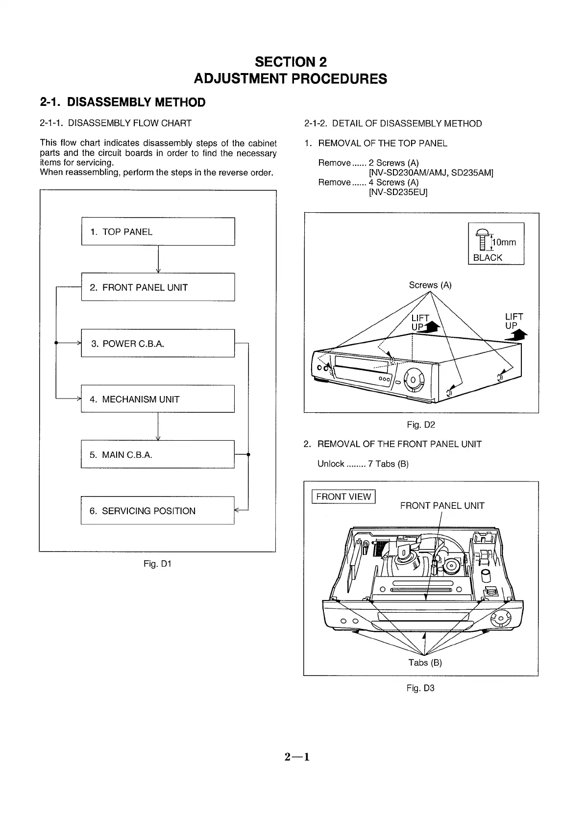 Panasonic NV-SD230 - Adjustment Procedures; Disassembly Method; Disassembly Flow Chart; Detail of Disassembly Method