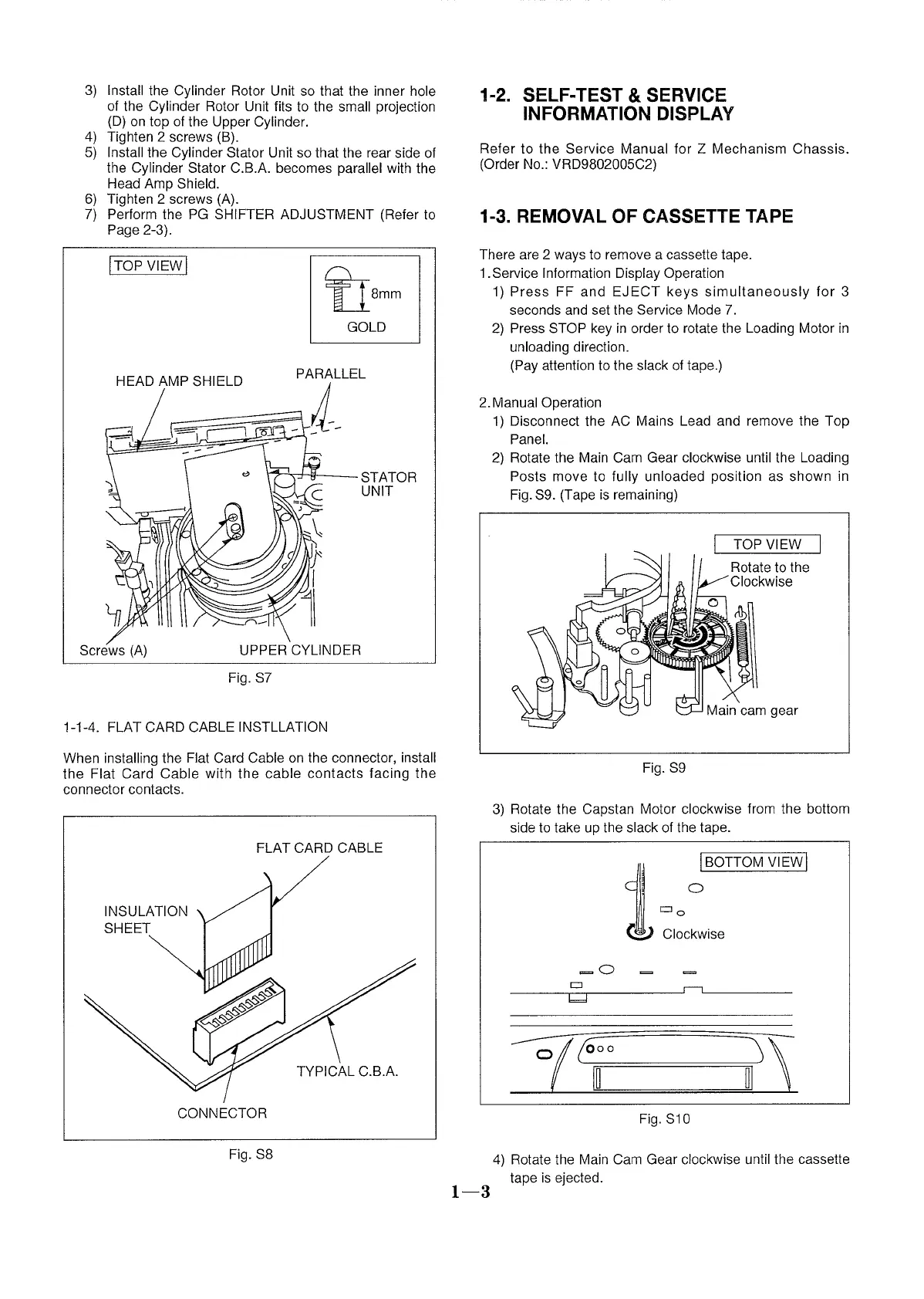 Panasonic NV-SD230 - Self-Test & Service Information Display; Removal of Cassette Tape; Flat Card Cable Installation