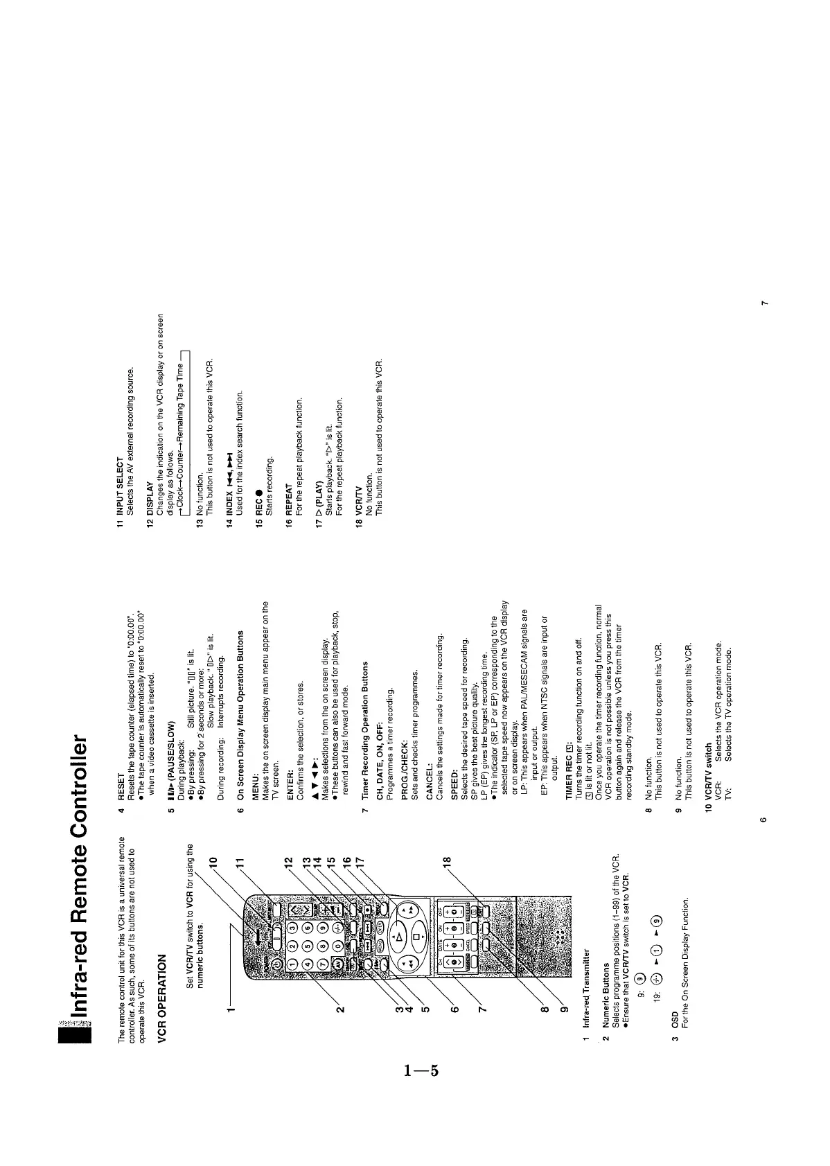 Panasonic NV-SD230 - Infra-Red Remote Controller; VCR Operation