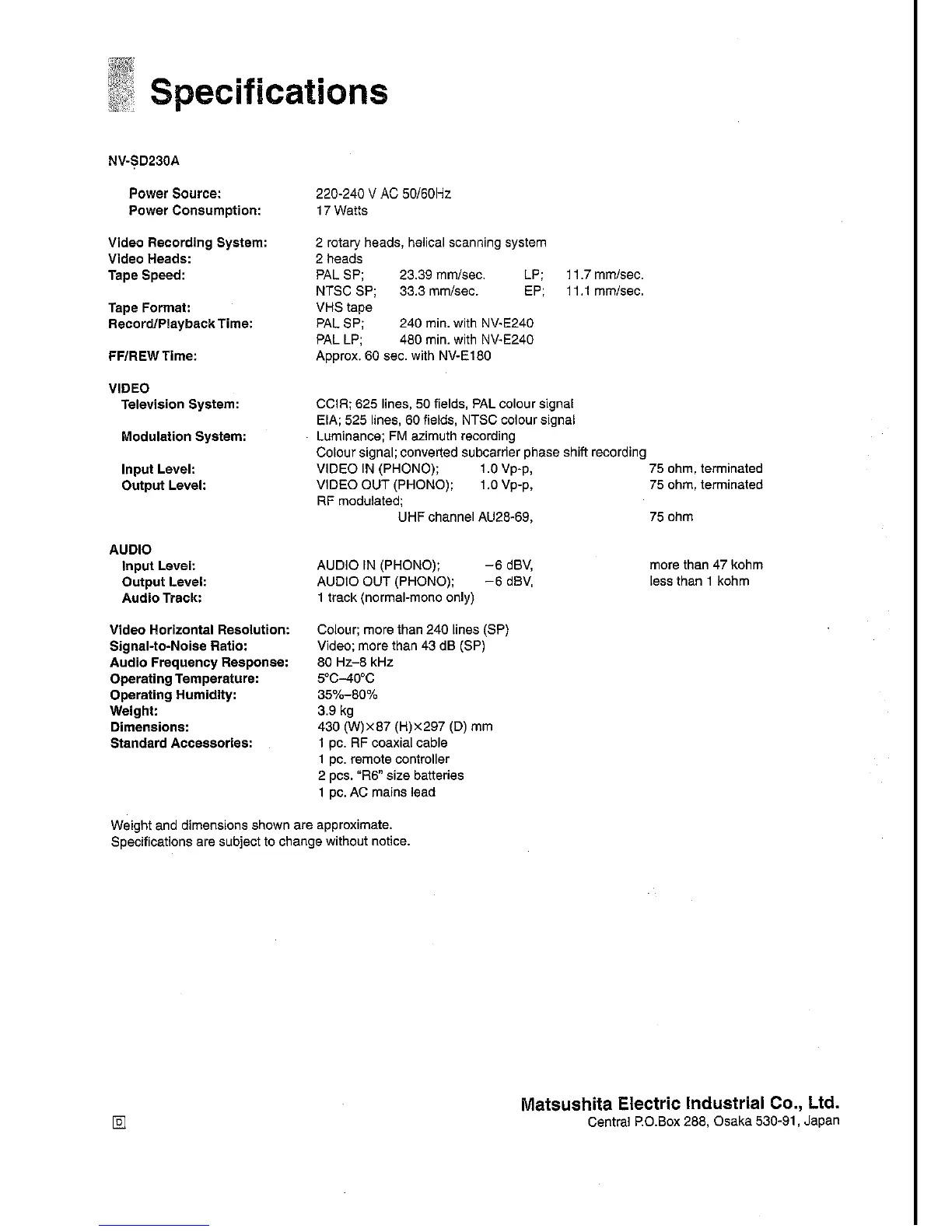 Panasonic NV-SD230A