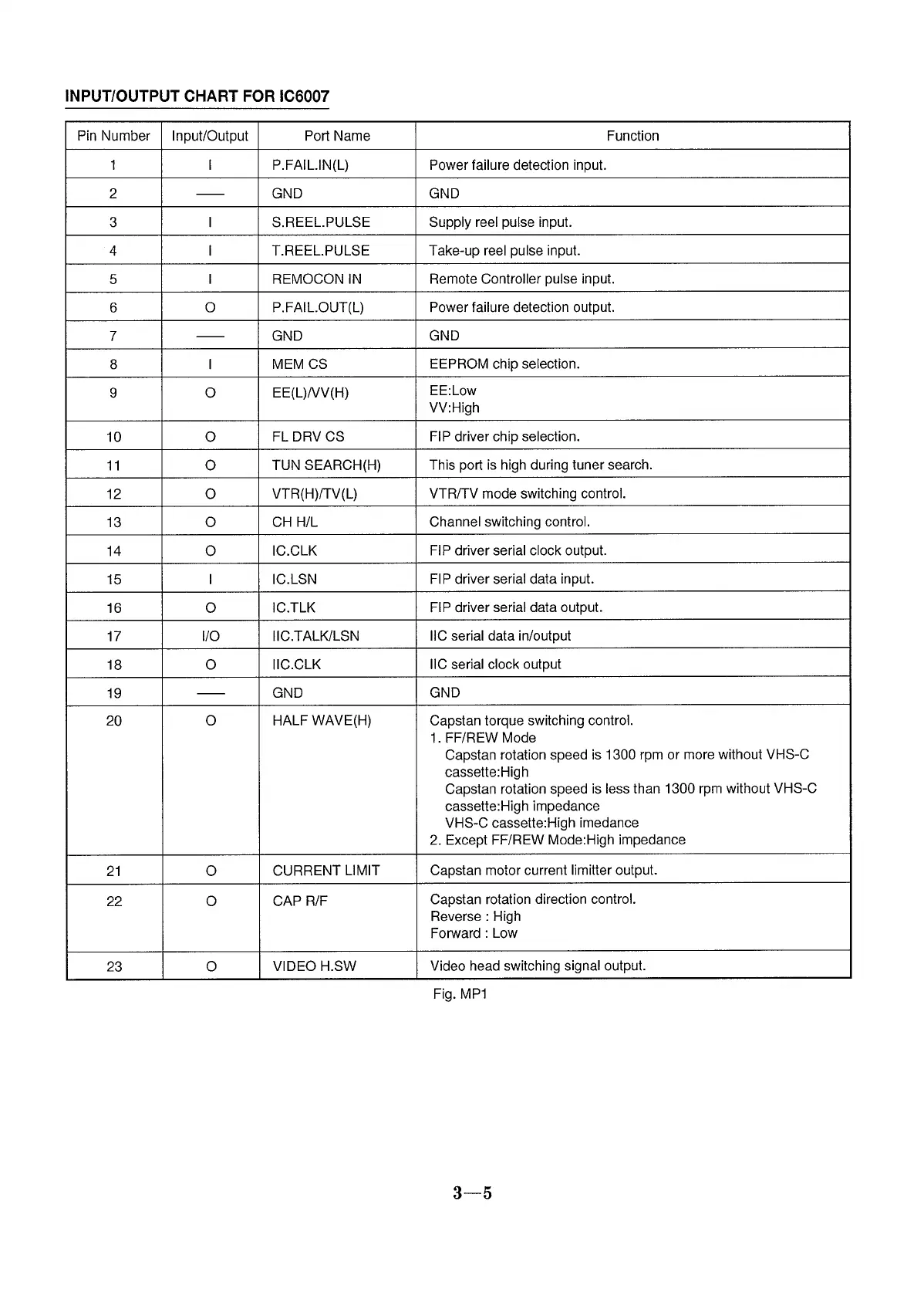 Panasonic NV-SD235 - Input;Output Chart for IC6007