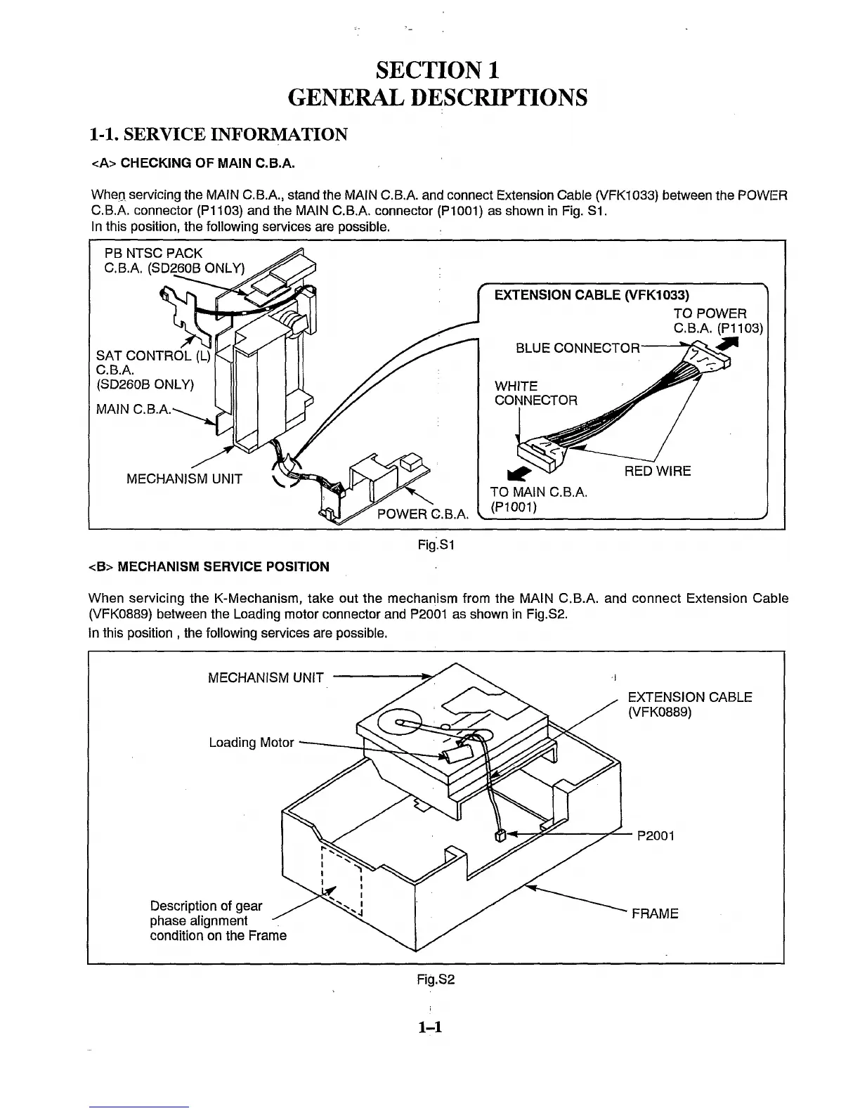 Panasonic NV-SD260 - General Descriptions; Service Information; Checking of Main CBA; Mechanism Service Position
