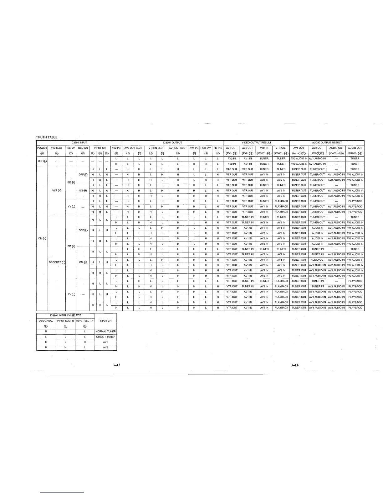 Panasonic NV-SD260 - Truth Table