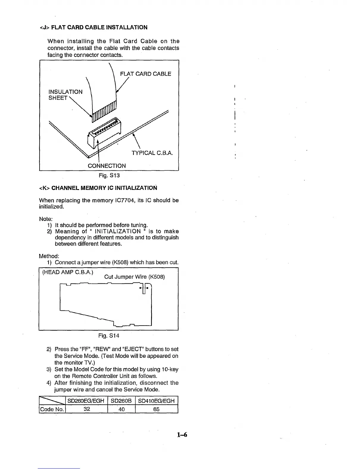 Panasonic NV-SD260 - Flat Card Cable Installation; Channel Memory IC Initialization