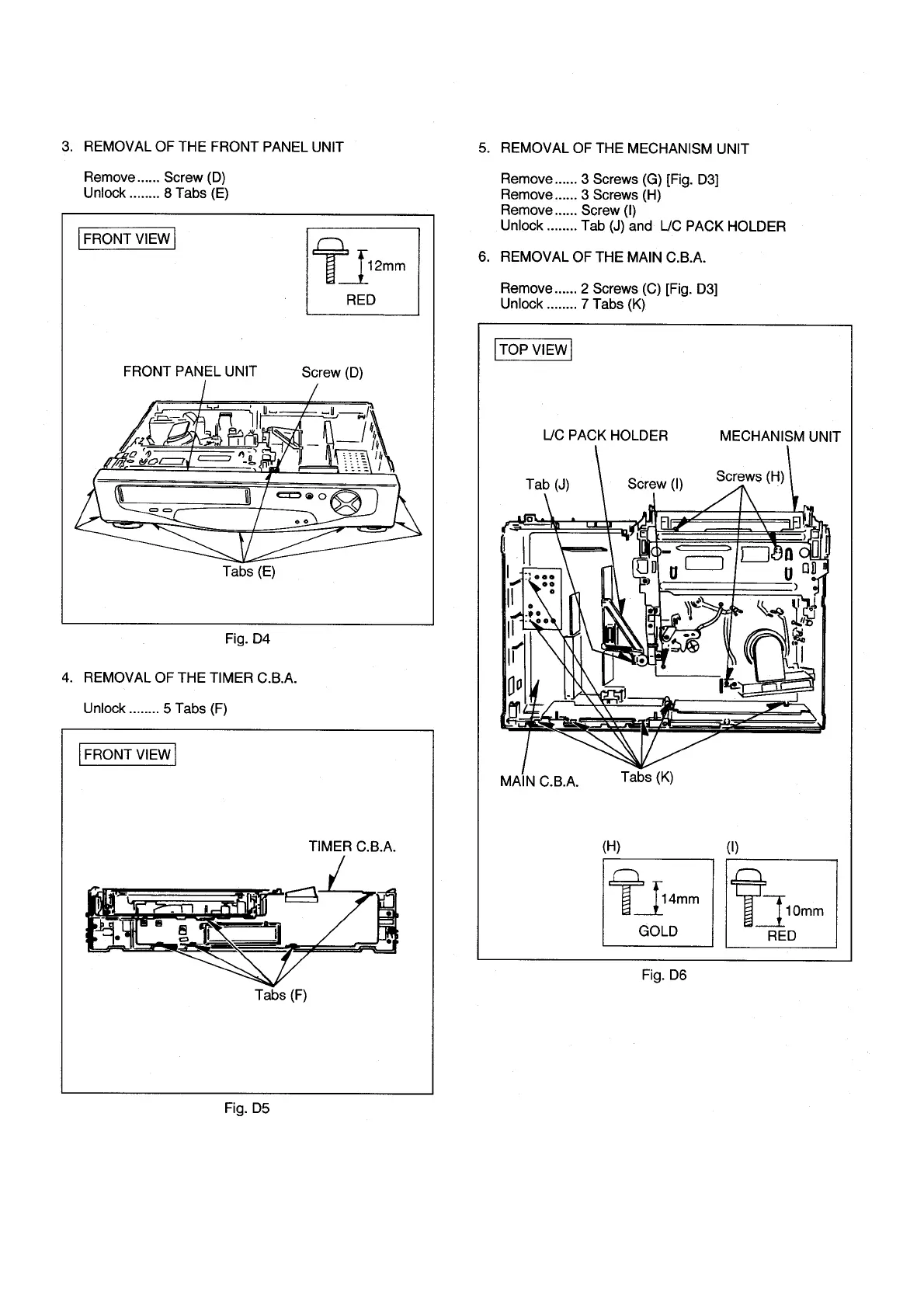 Panasonic NV-SD300AM - Removal of the Front Panel Unit; Removal of the Mechanism Unit; Removal of the Main C.B.A.; Removal of the Timer C.b.a.