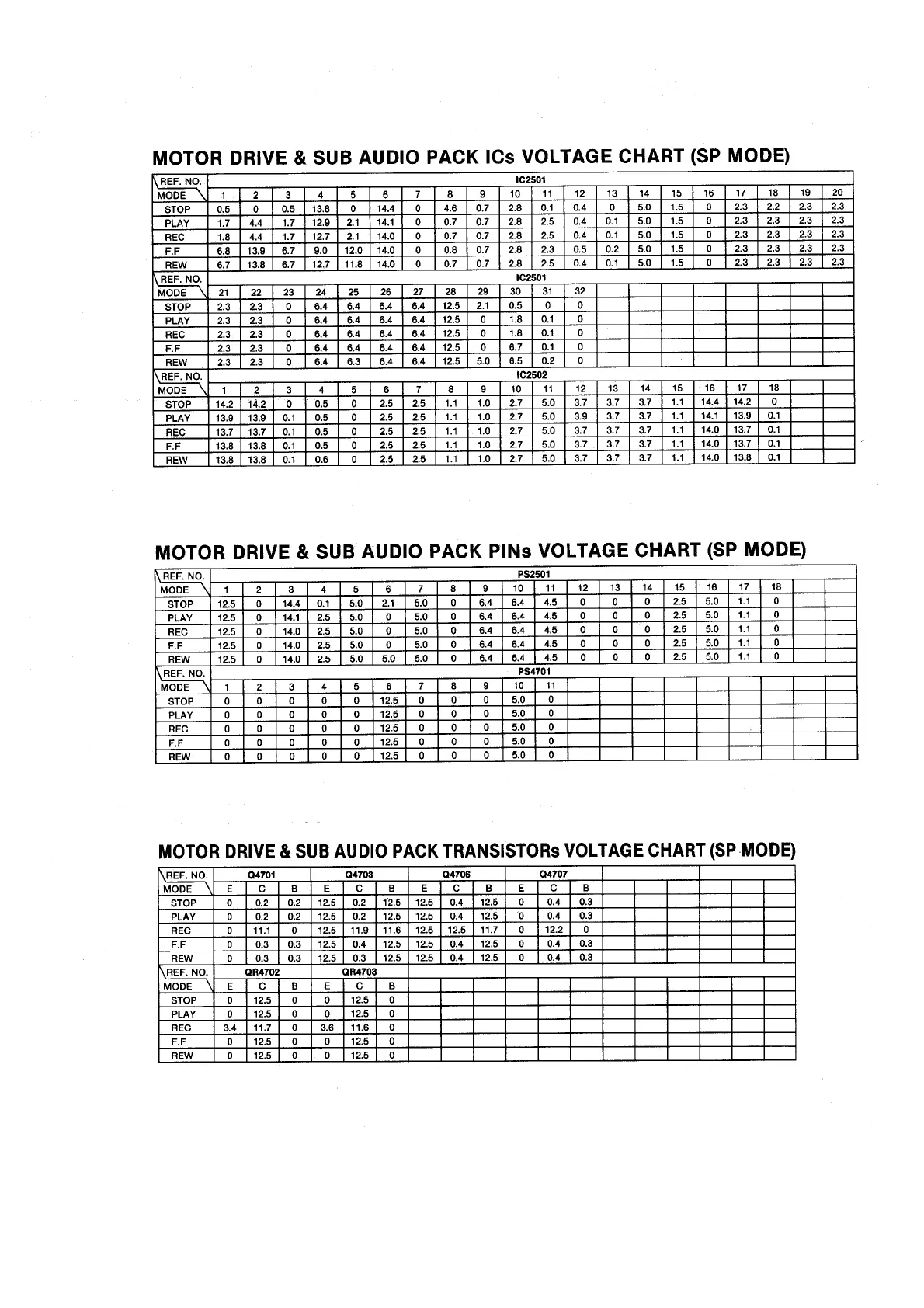 Panasonic NV-SD300AM - Motor Drive & Sub Audio Pack Ics Voltage Chart
