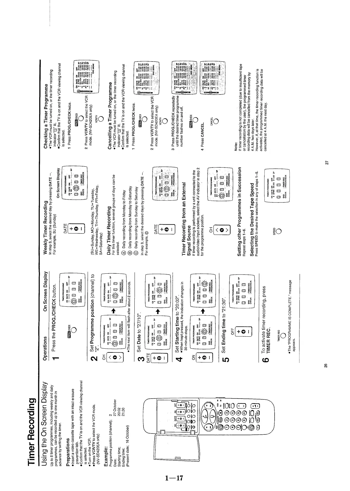 Panasonic NV-SD320 - Time Recording; Using the on Screen Display; Weekly Timer Recording; Cancelling a Timer Programme