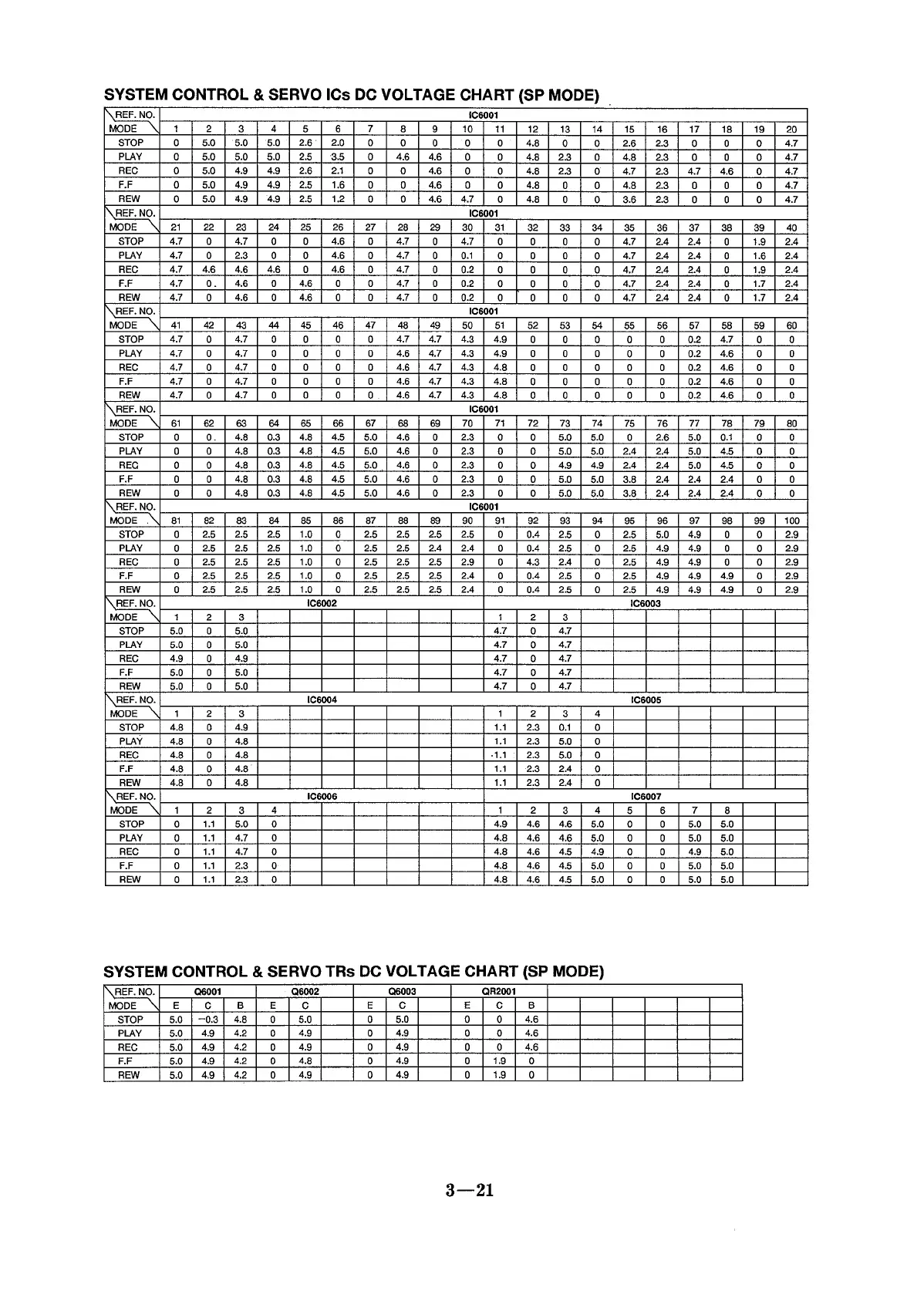 Panasonic NV-SD320 - System Control and Servo Ics DC Voltage Chart (SP Mode); System Control and Servo Trs DC Voltage Chart (SP Mode)
