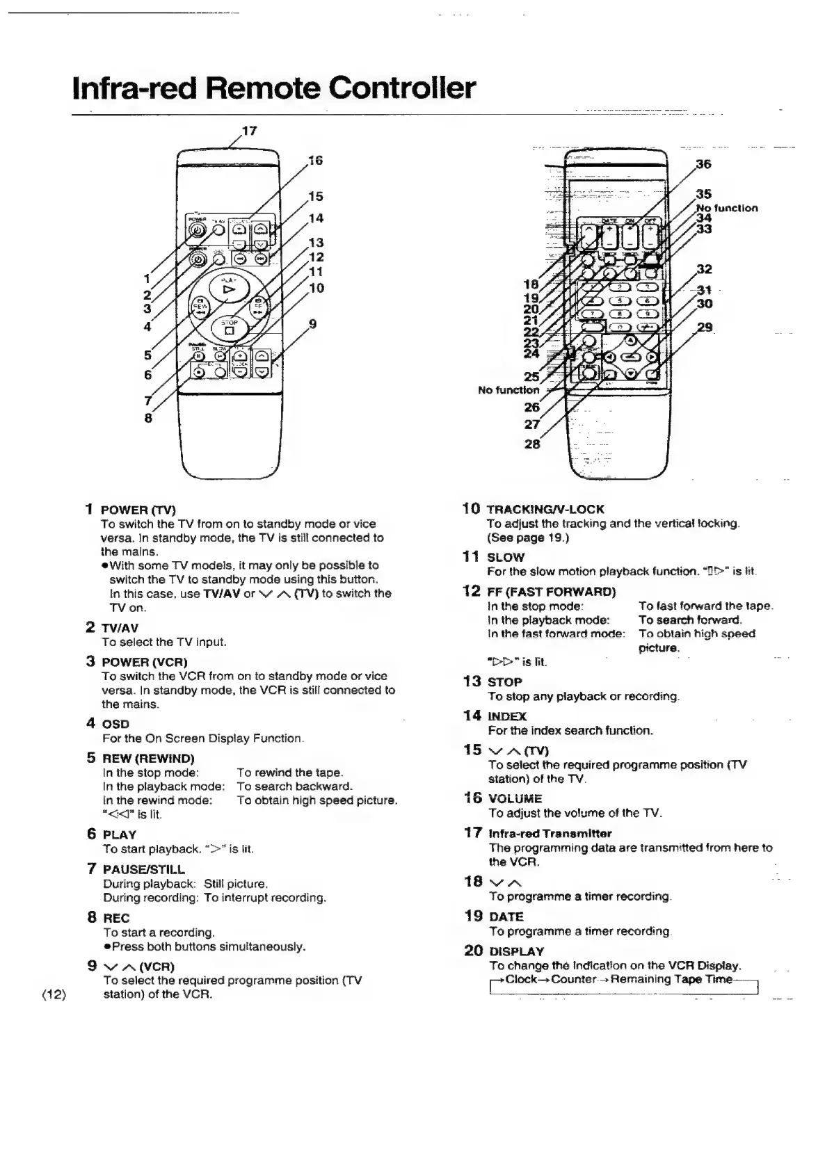Panasonic NV-SD350 - Infra-Red Remote Controller