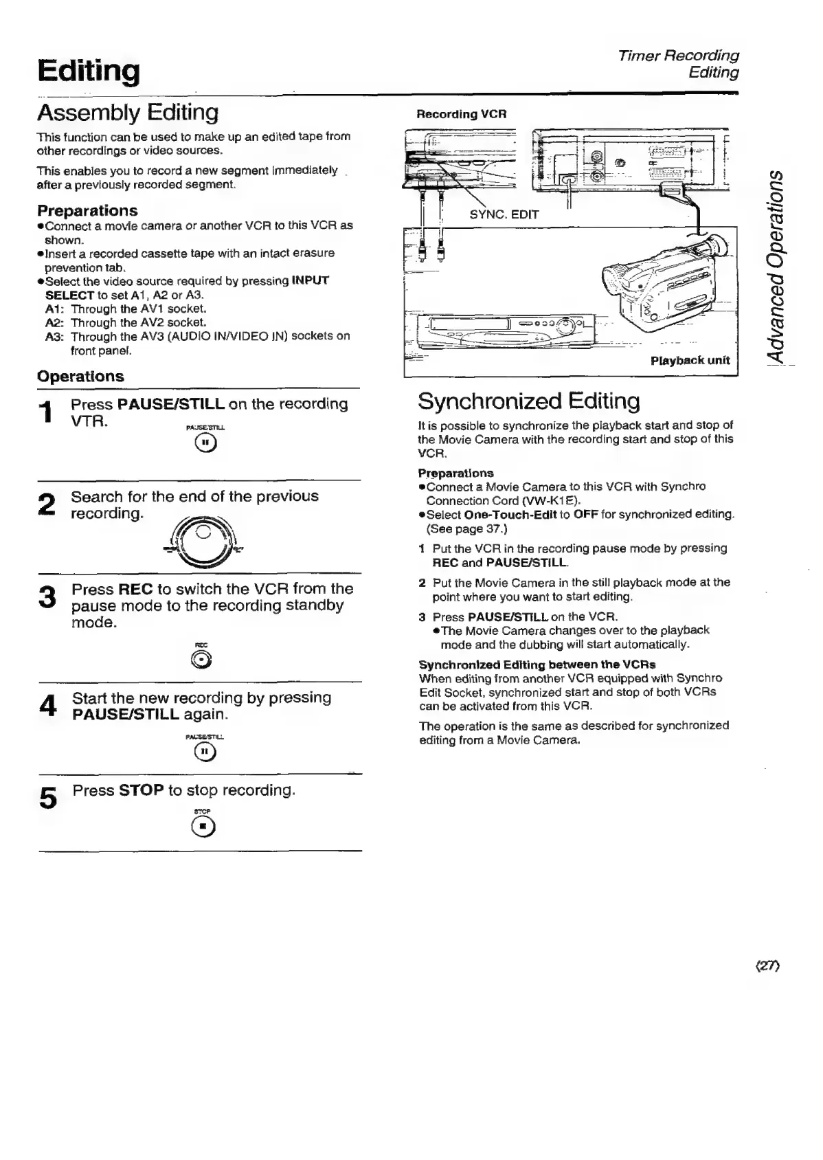 Panasonic NV-SD350 - Assembly Editing; Synchronized Editing