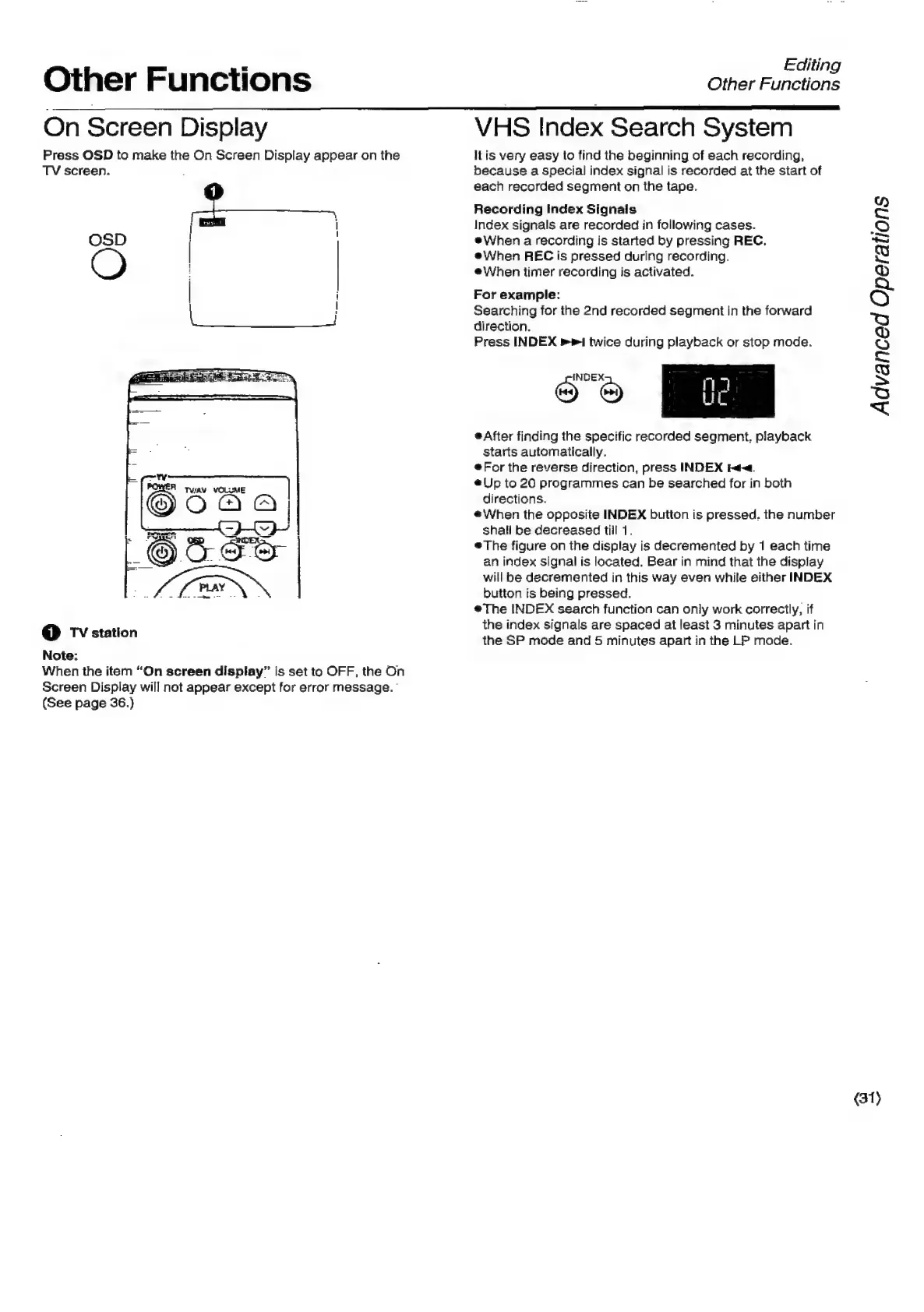 Panasonic NV-SD350 - Other Functions; On Screen Display; VHS Index Search System
