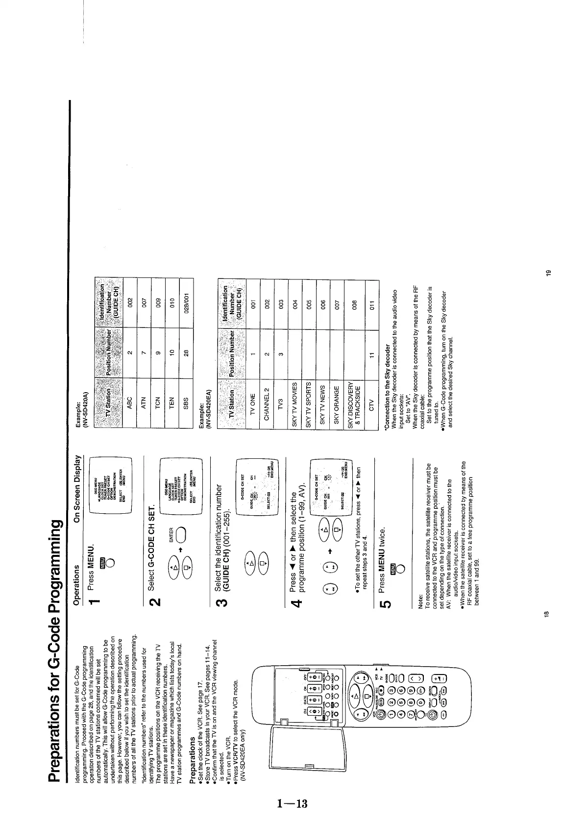 Panasonic NV-SD420 - Preparations for G-Code Programming