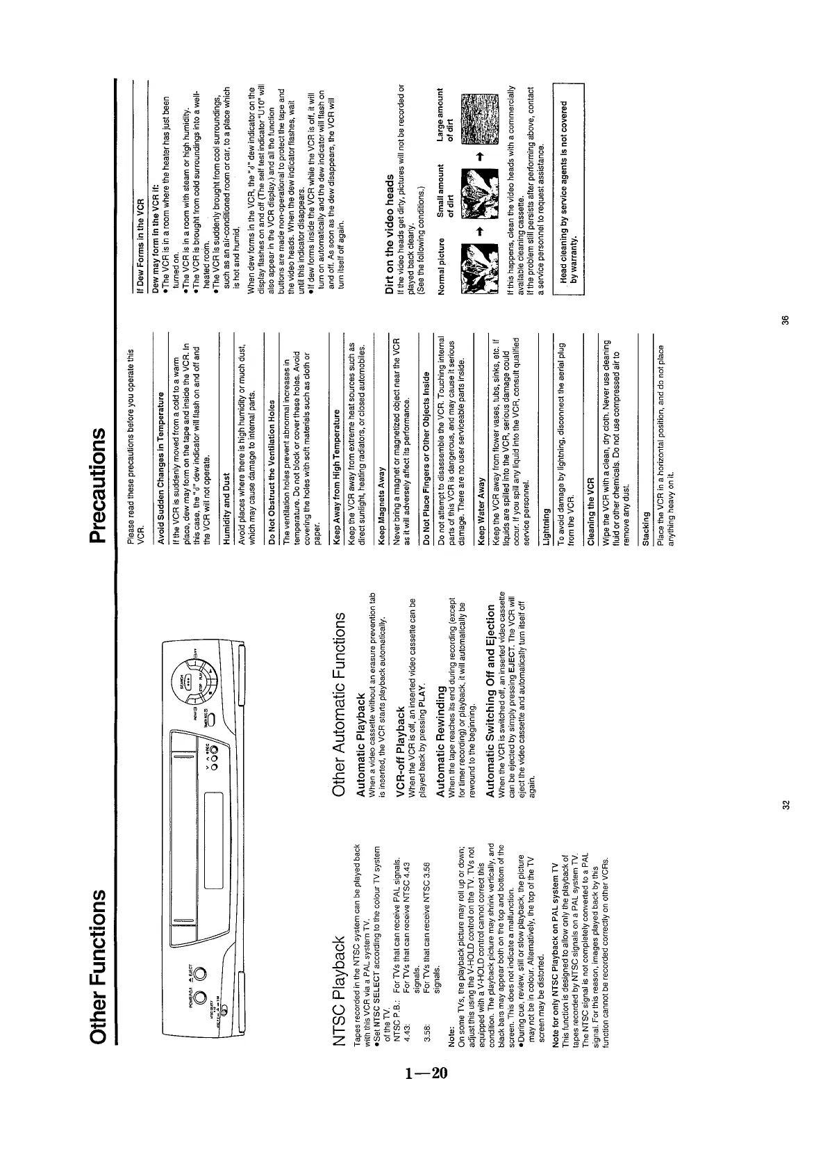 Panasonic NV-SD420 - Other Functions; Precautions; NTSC Playback; Other Automatic Functions
