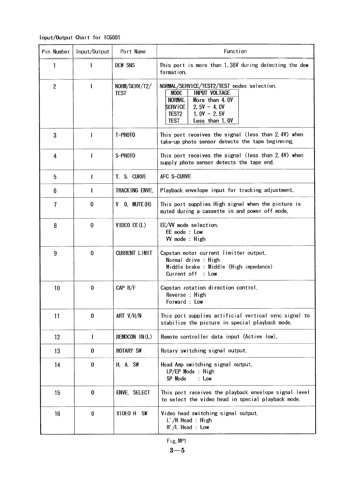 Panasonic NV-SD420 - Input; Output Chart for IC6001