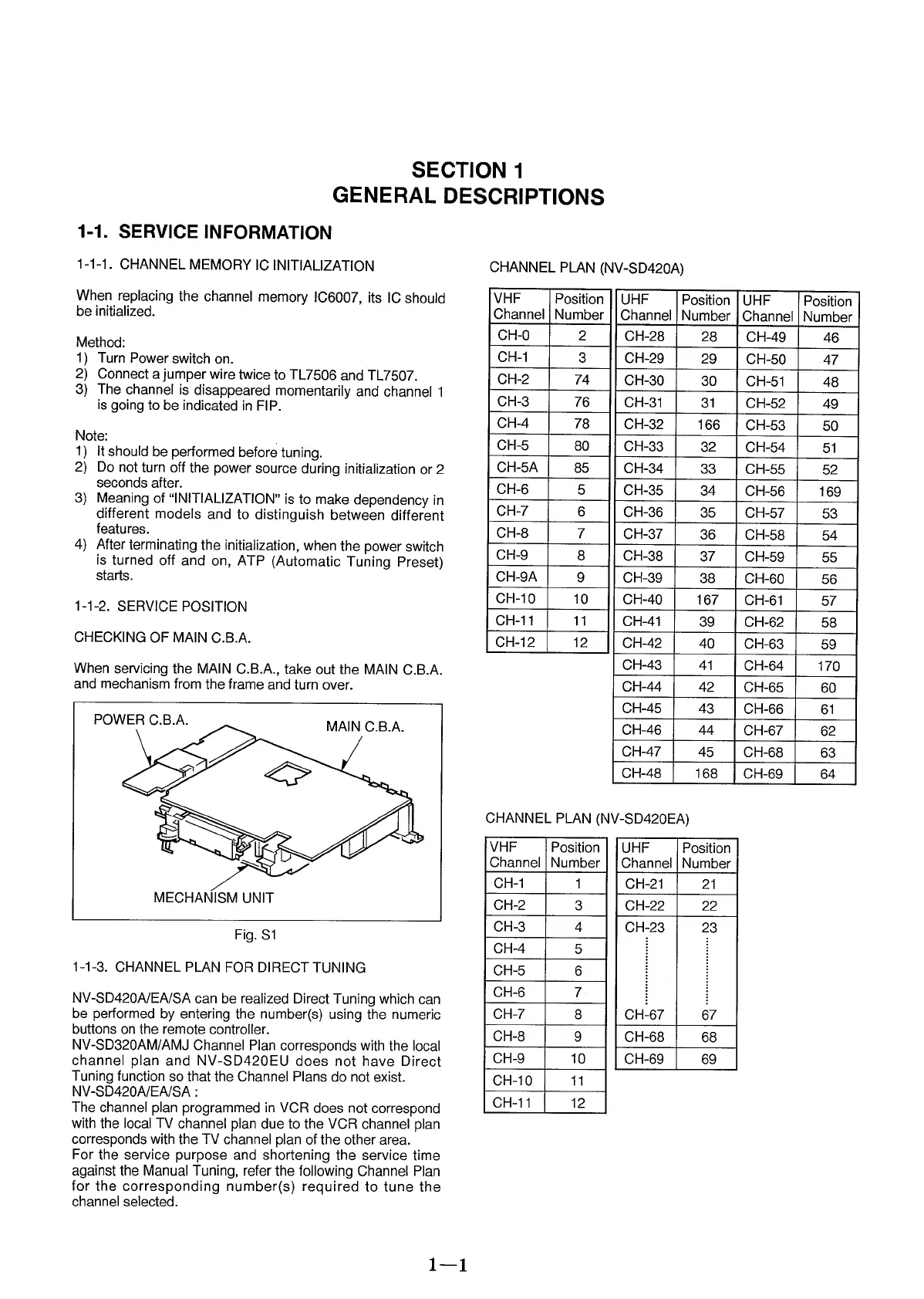 Panasonic NV-SD420 - SECTION 1 GENERAL DESCRIPTIONS; 1-1. SERVICE INFORMATION