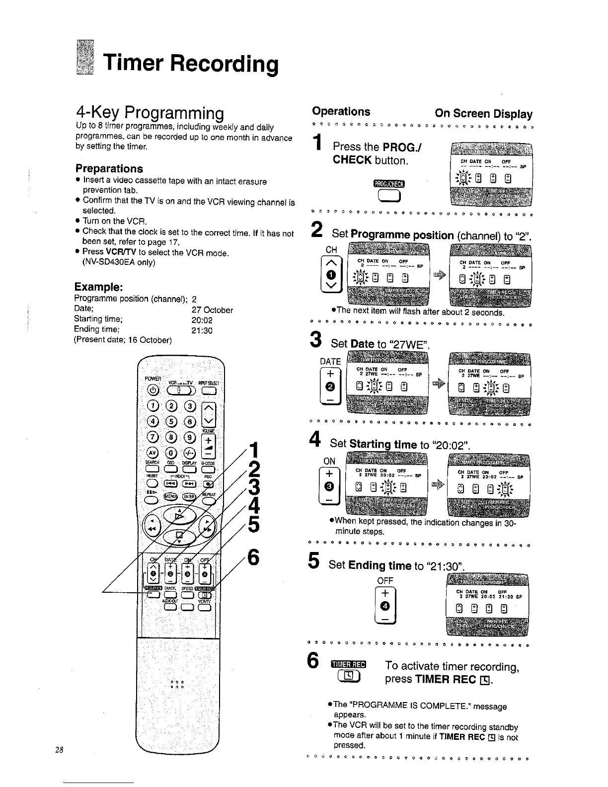 Panasonic NV-SD430 Series - Timer Recording; 4-Key Programming