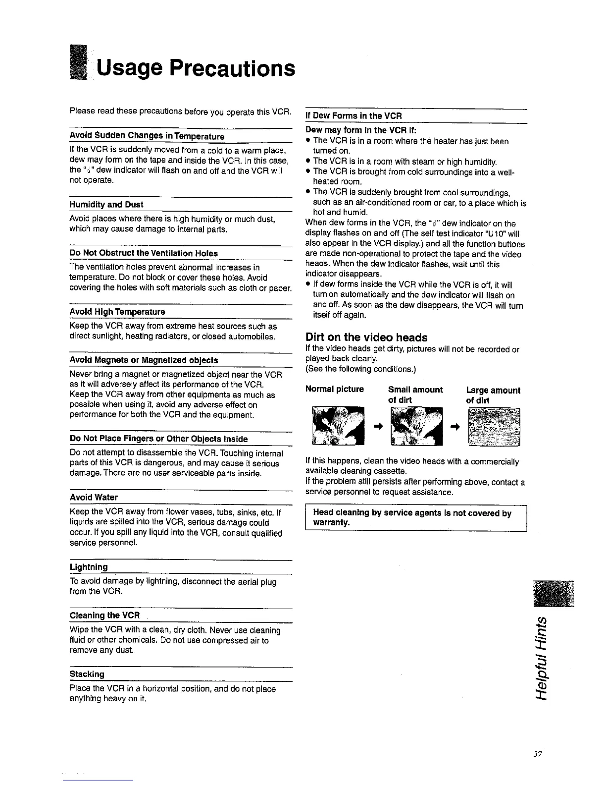 Panasonic NV-SD430 Series - Usage Precautions; Operational and Environmental Precautions