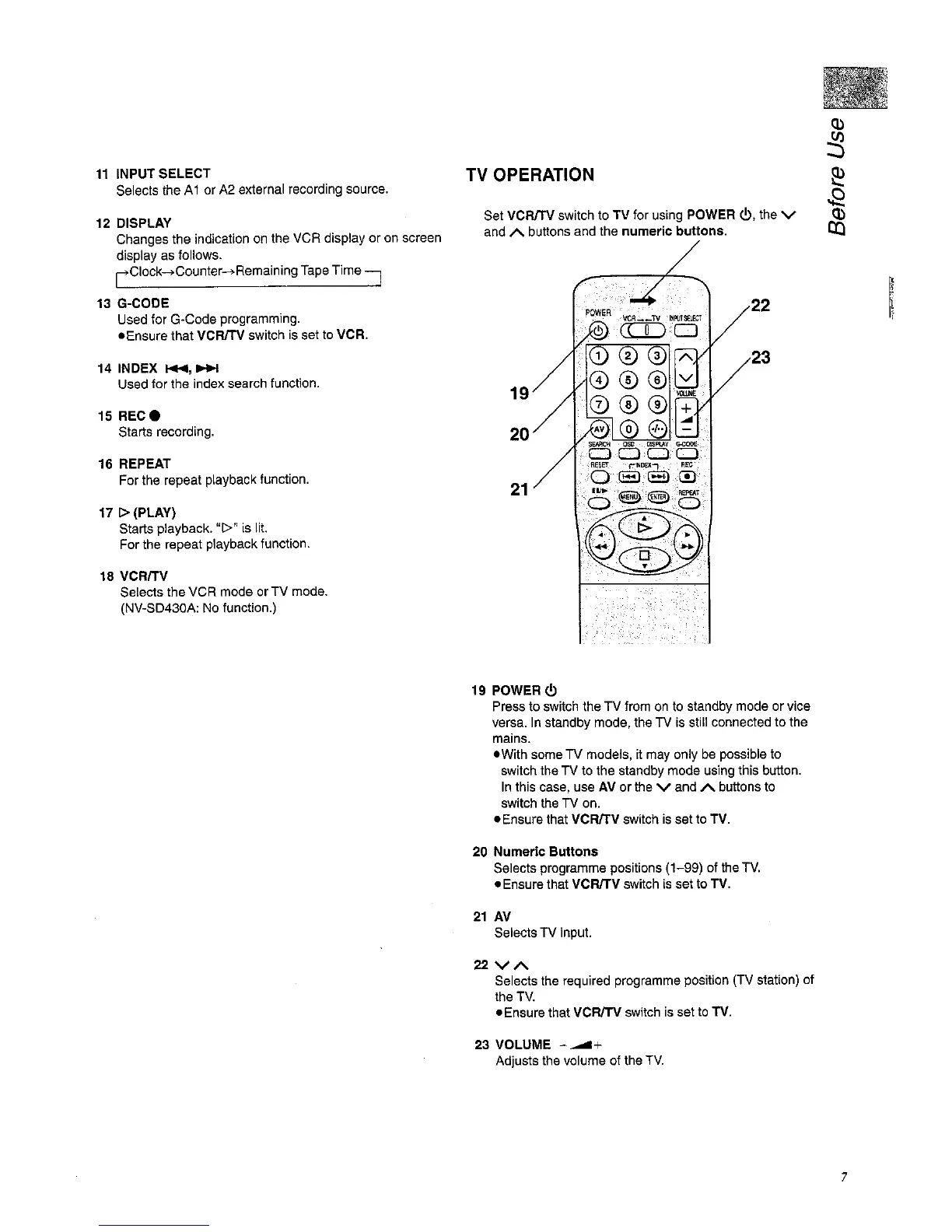 Panasonic NV-SD430 Series - TV Operation Buttons