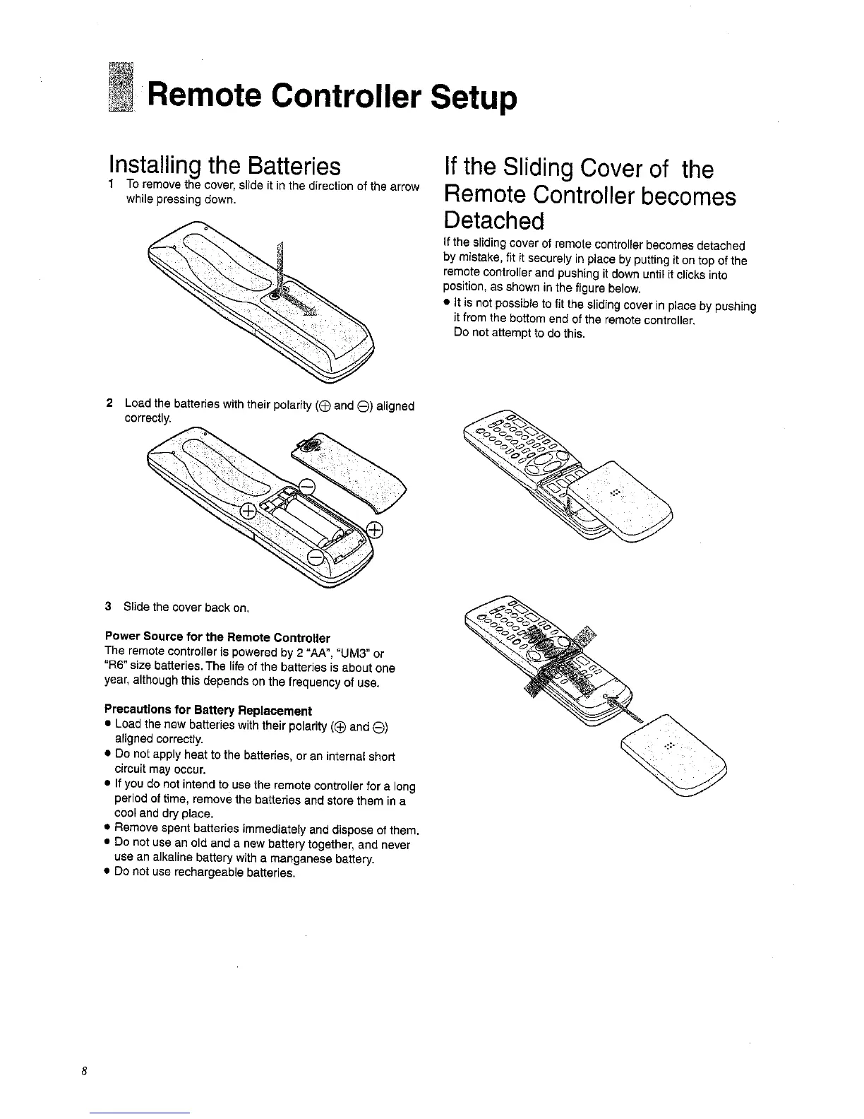 Panasonic NV-SD430 Series - Remote Controller Setup