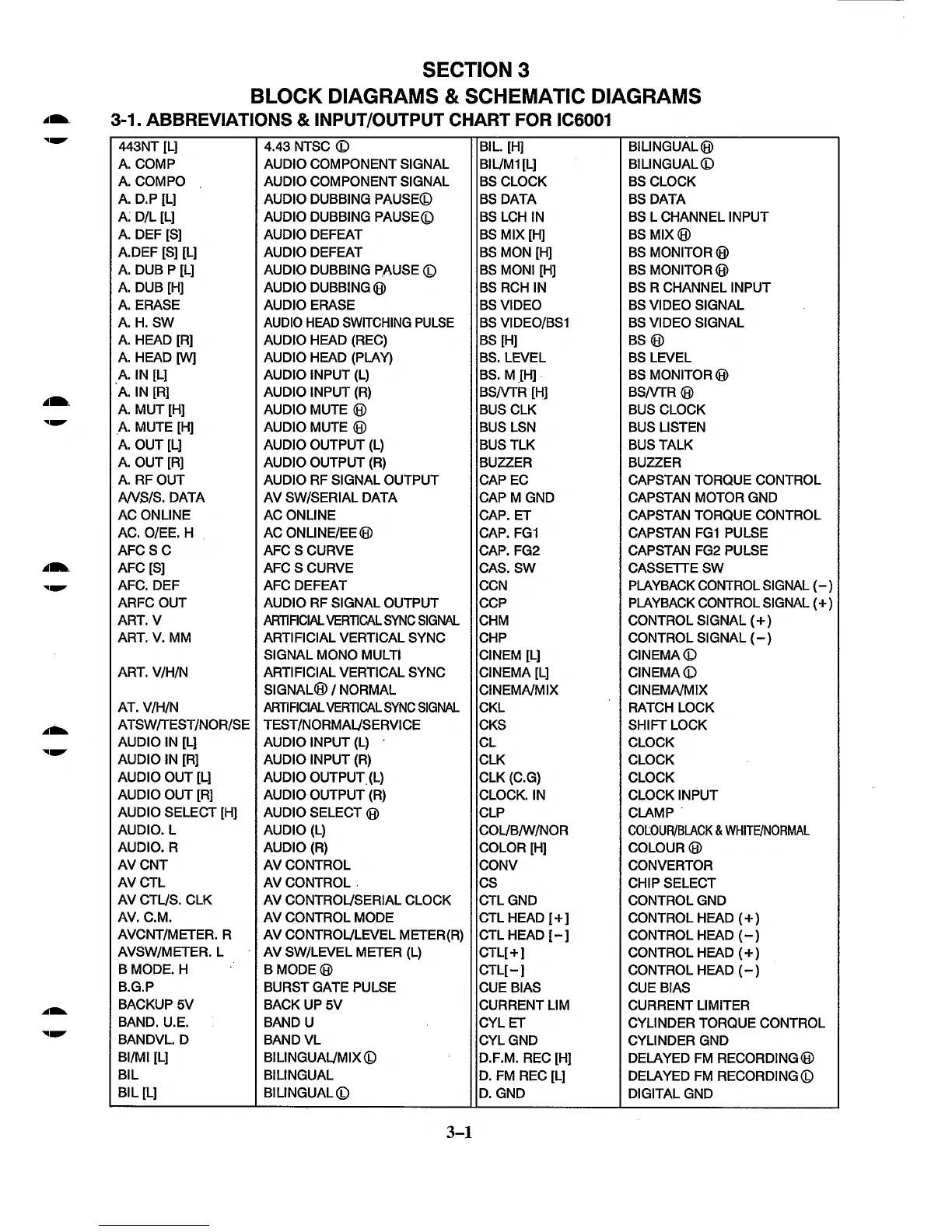 Panasonic NV-SD430 - 3-1. ABBREVIATIONS & INPUT;OUTPUT CHART FOR IC6001