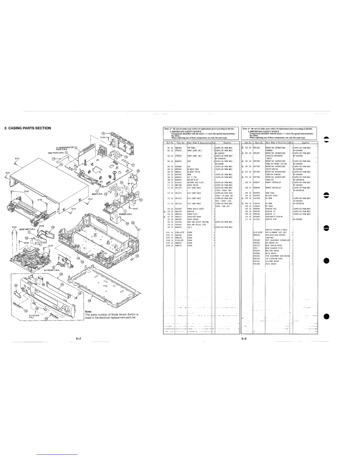 Panasonic NV-SD430 - 2. CASING PARTS SECTION