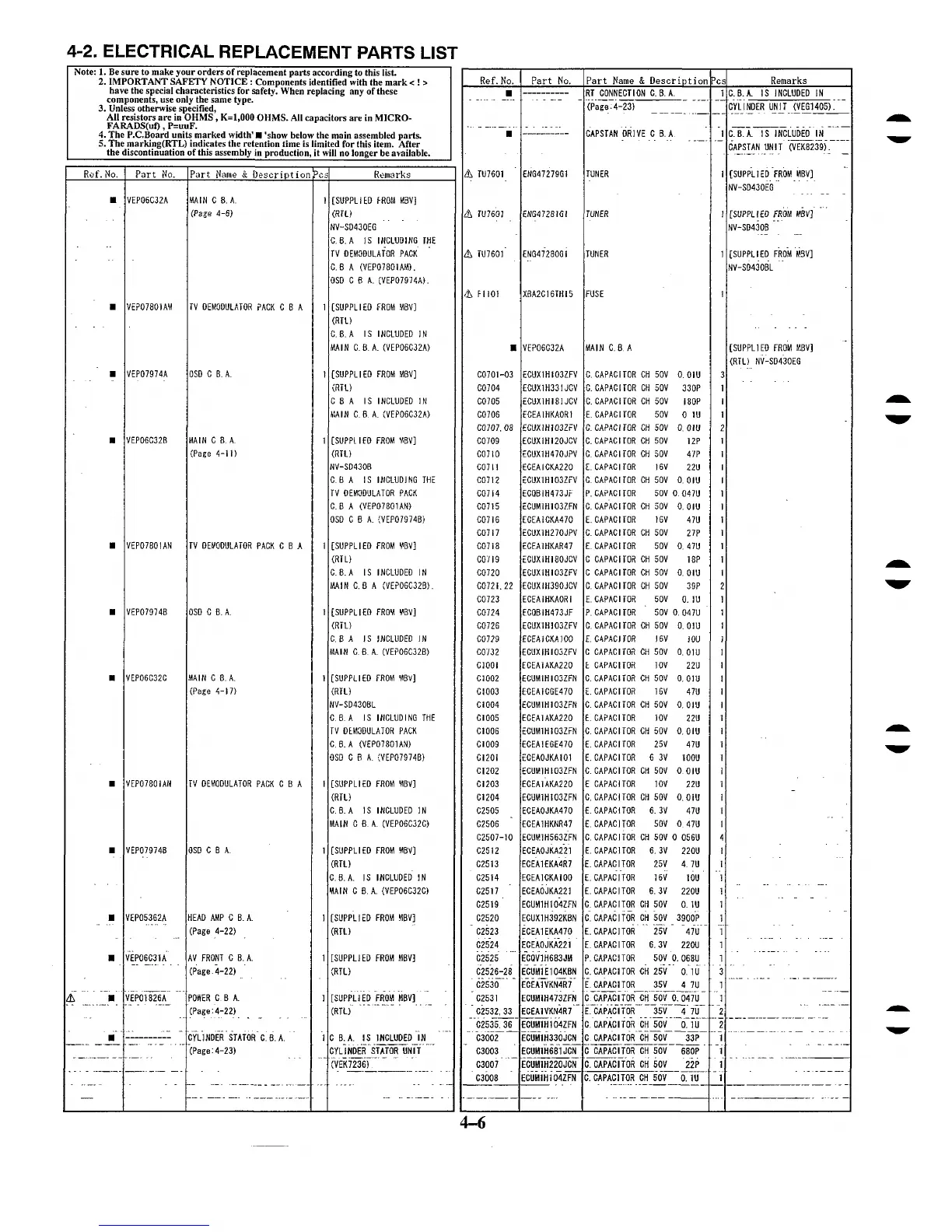 Panasonic NV-SD430 - 4-2. ELECTRICAL REPLACEMENT PARTS LIST