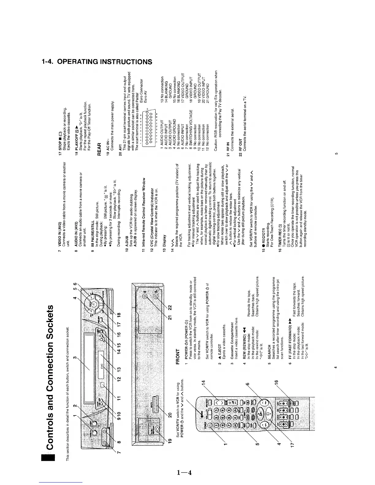 Panasonic NV-SD435EE - Controls and Connection Sockets; Operating Instructions