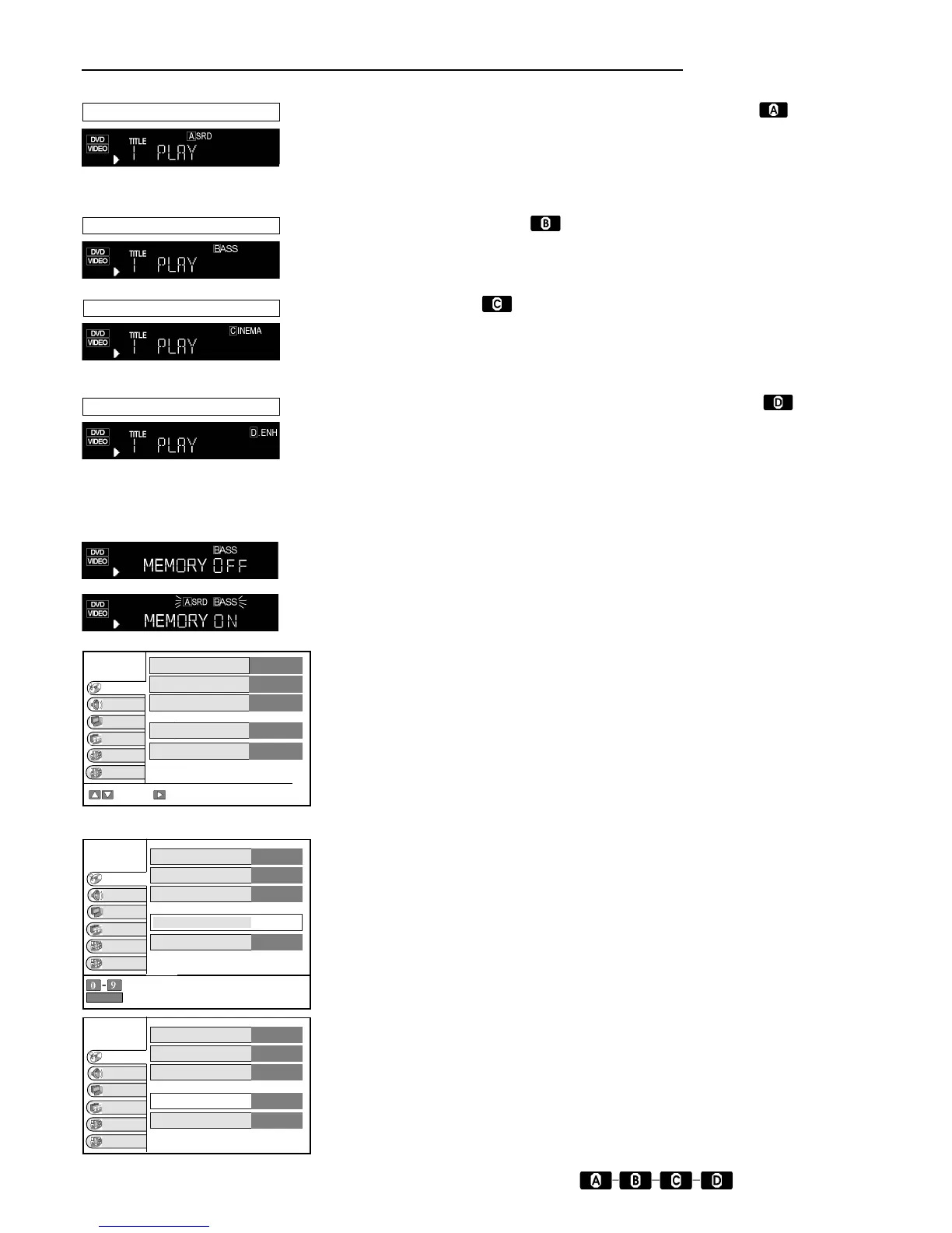 This feature allows the settings that you made for ADVANCED SURROUND, BASS, CINEMA and
