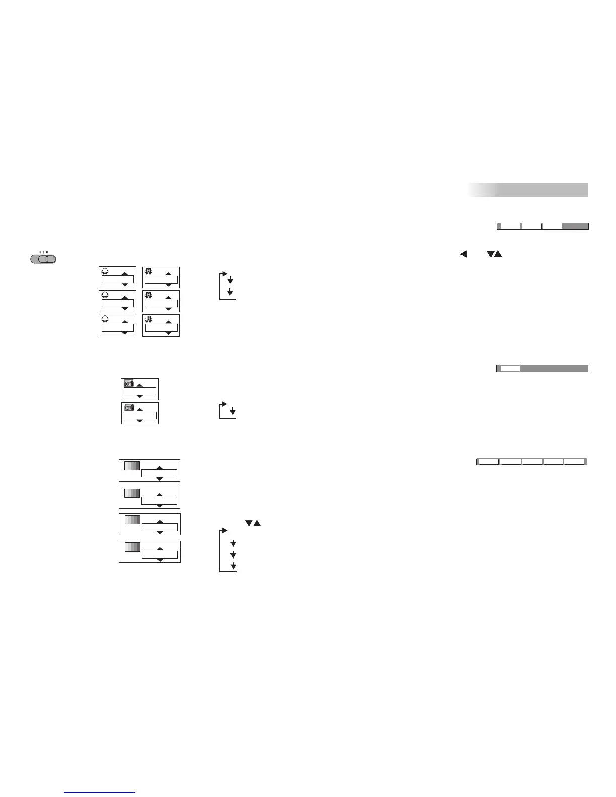 Repeatedly press the button to browse the settings. Press and to toggle between