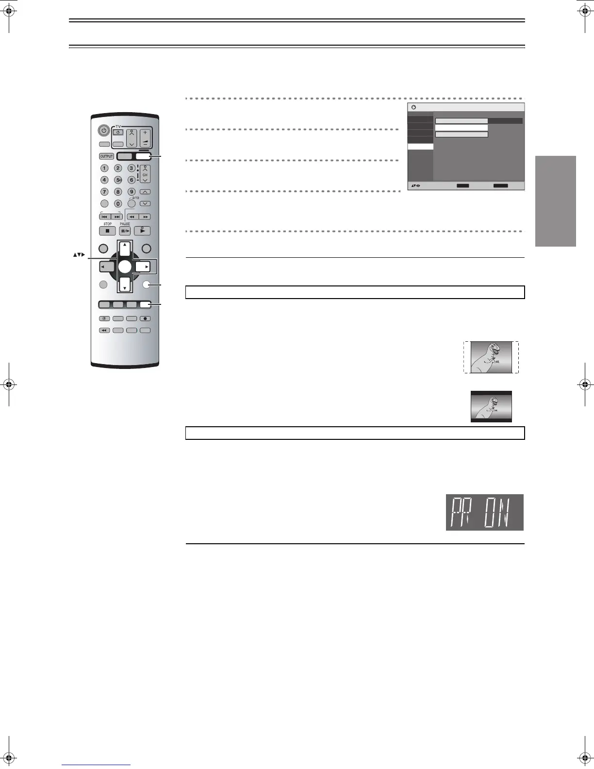 Menu Language (l 41) TV Aspect (l below) Progressive Out (l below)