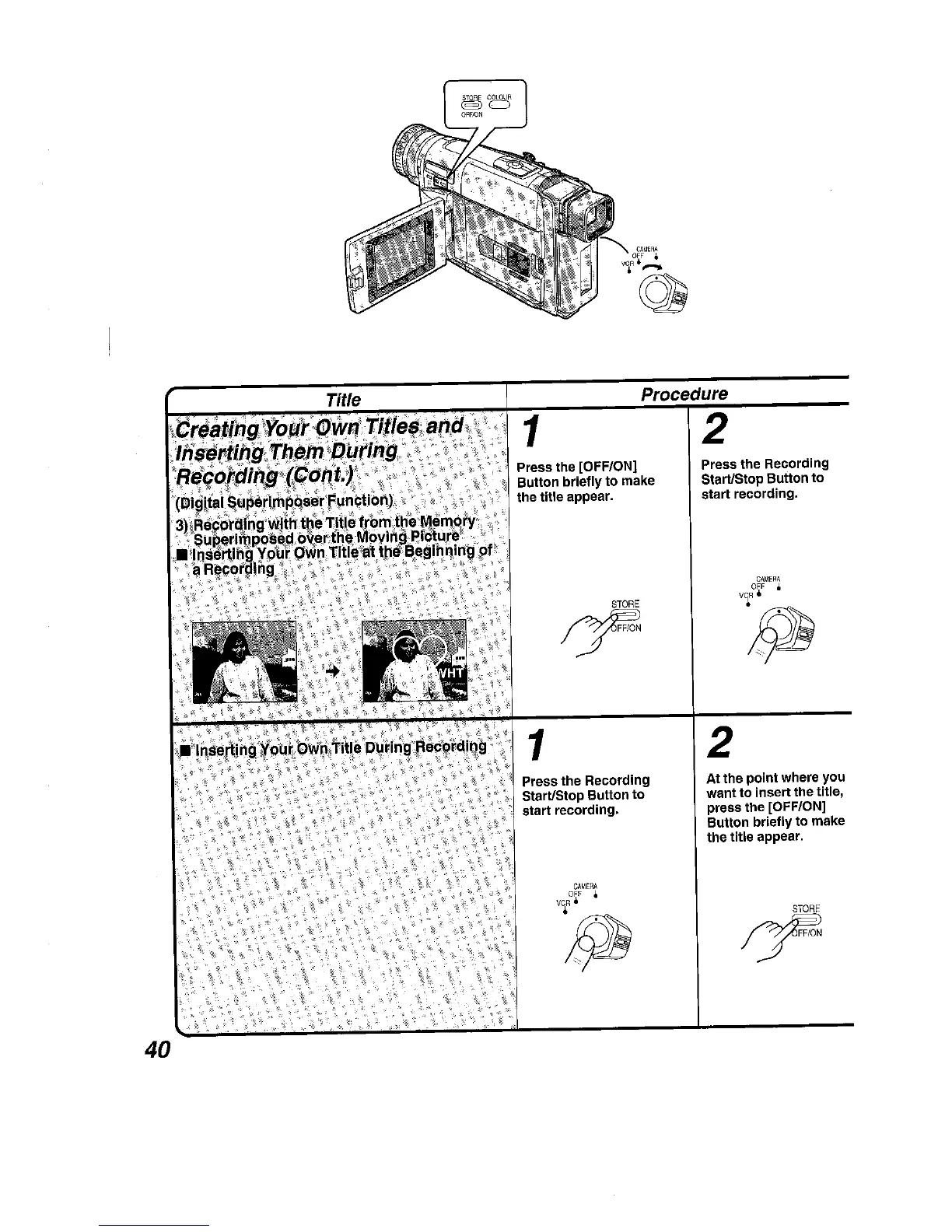 Panasonic NV VS 7 B - Inserting Your Own Title During Recording