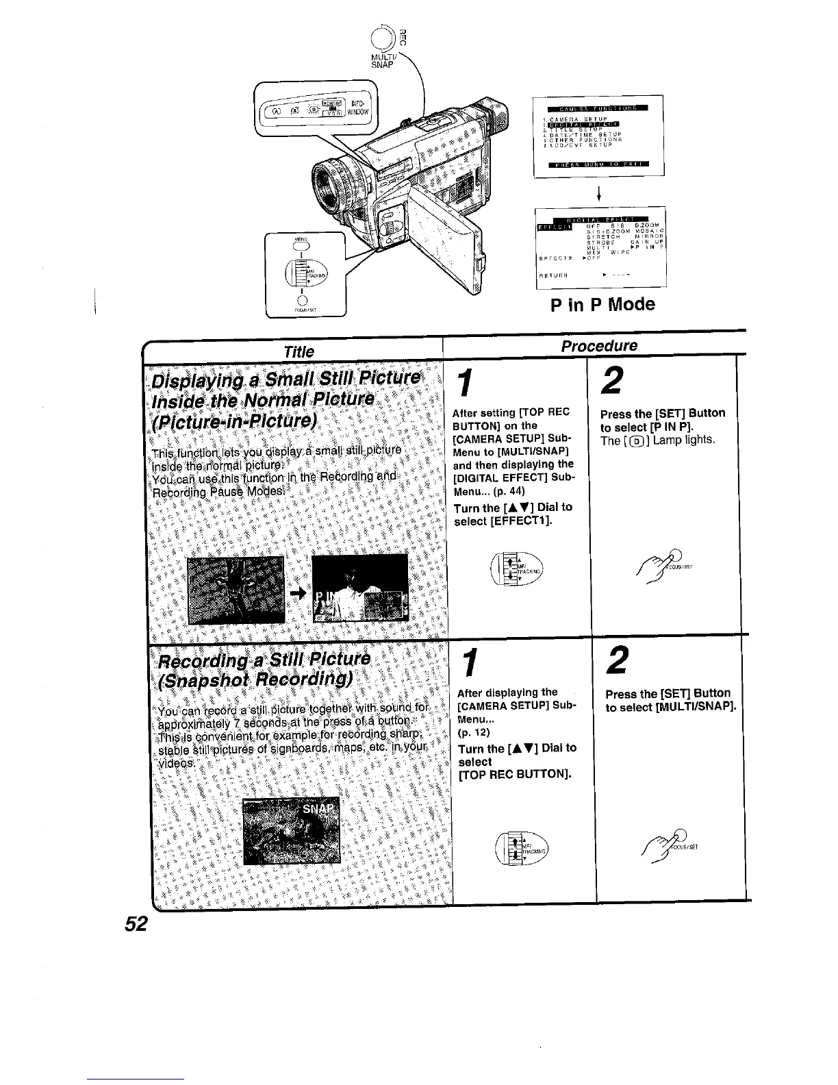 Panasonic NV VS 7 B - Displaying a Small Still Picture Inside the Normal Picture; Recording a Still Picture - Snapshot Recording
