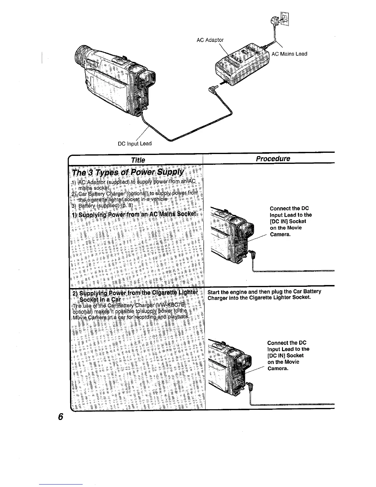 Panasonic NV VS 7 B - The 3 Types of Power Supply; Supplying Power from an AC Mains Socket; Supplying Power from the Cigarette Lighter Socket in a Car