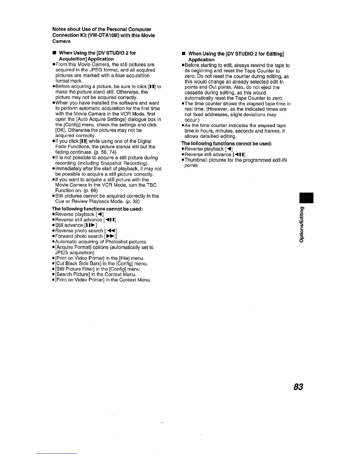 Panasonic NV VS 7 B - When Using the DV Studio 2 for Acquisition; When Using the DV Studio 2 for Editing