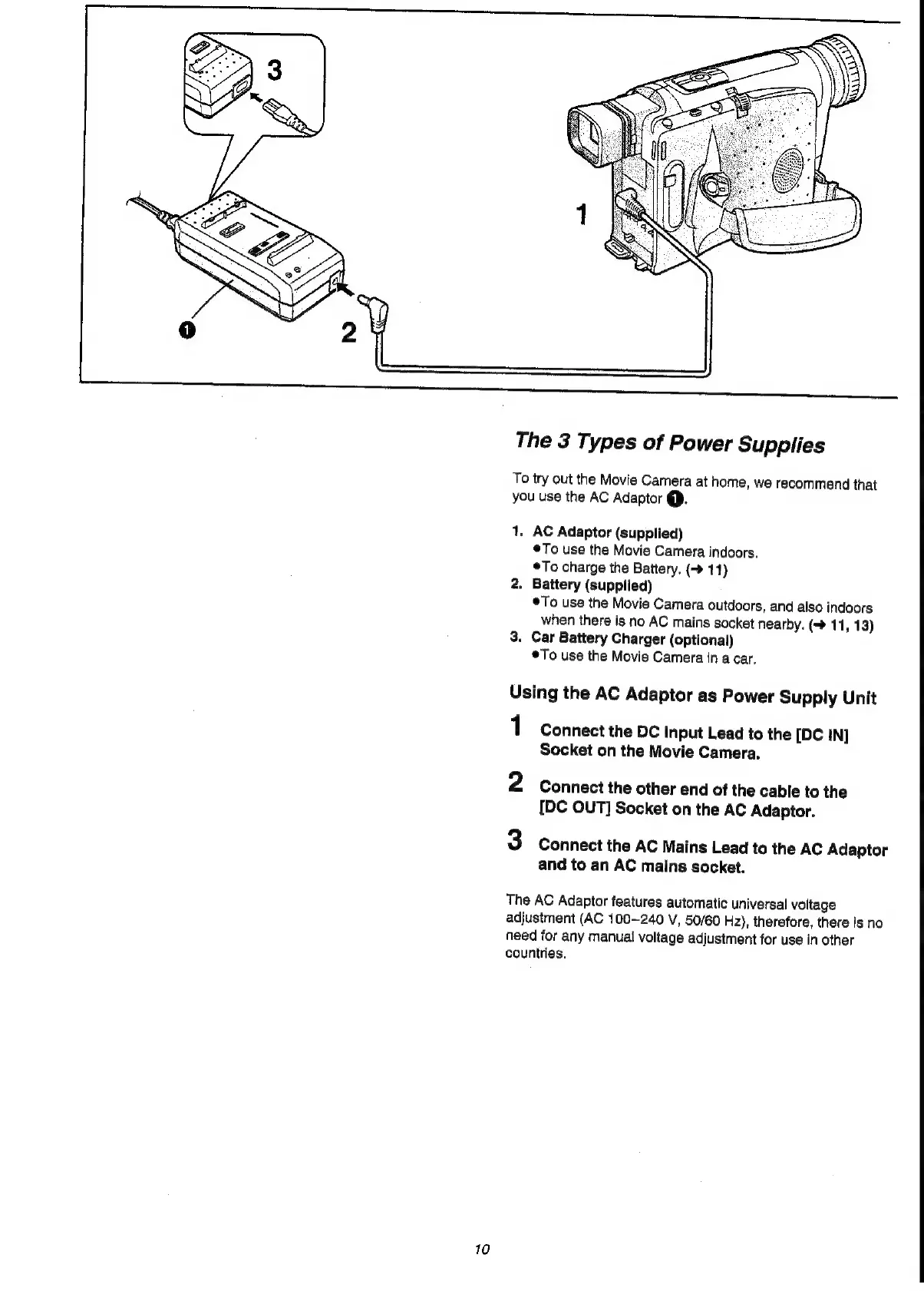 Panasonic NV-VS3A - Powering the Camera; Using the AC Adaptor
