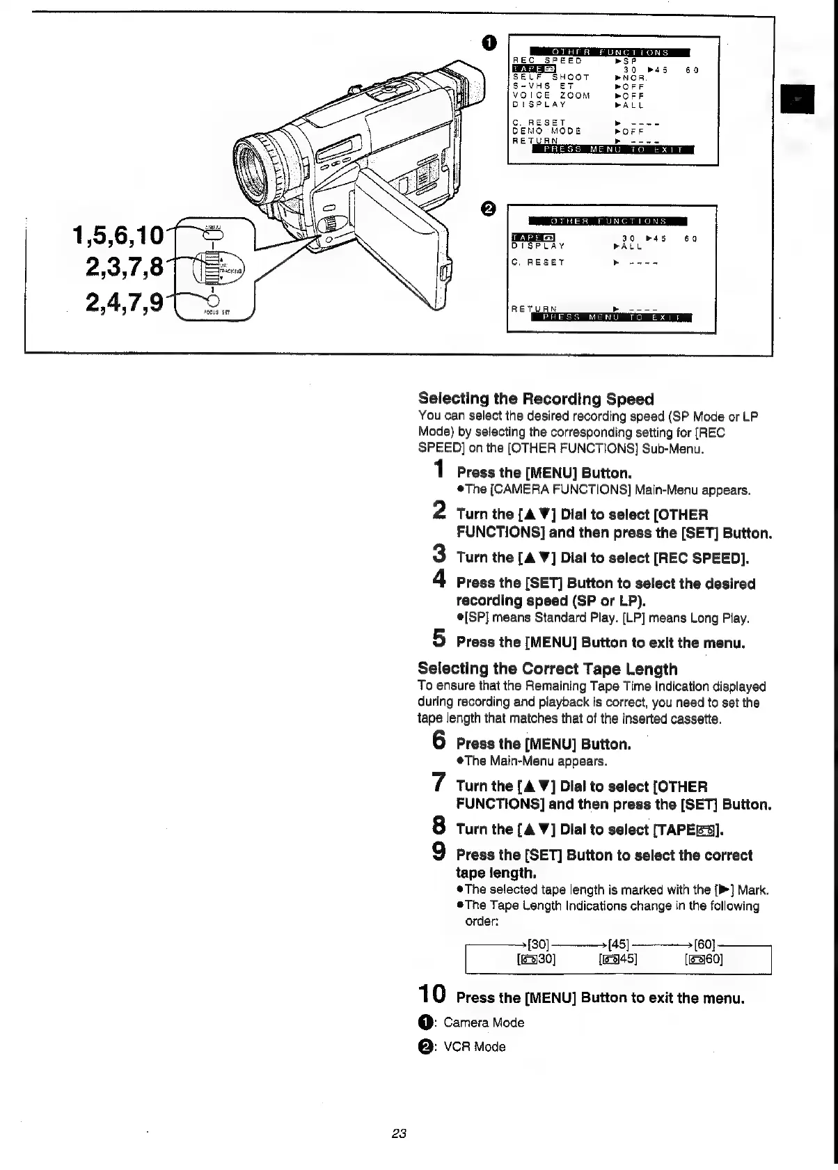 Panasonic NV-VS3A - Selecting Recording Speed and Tape Length