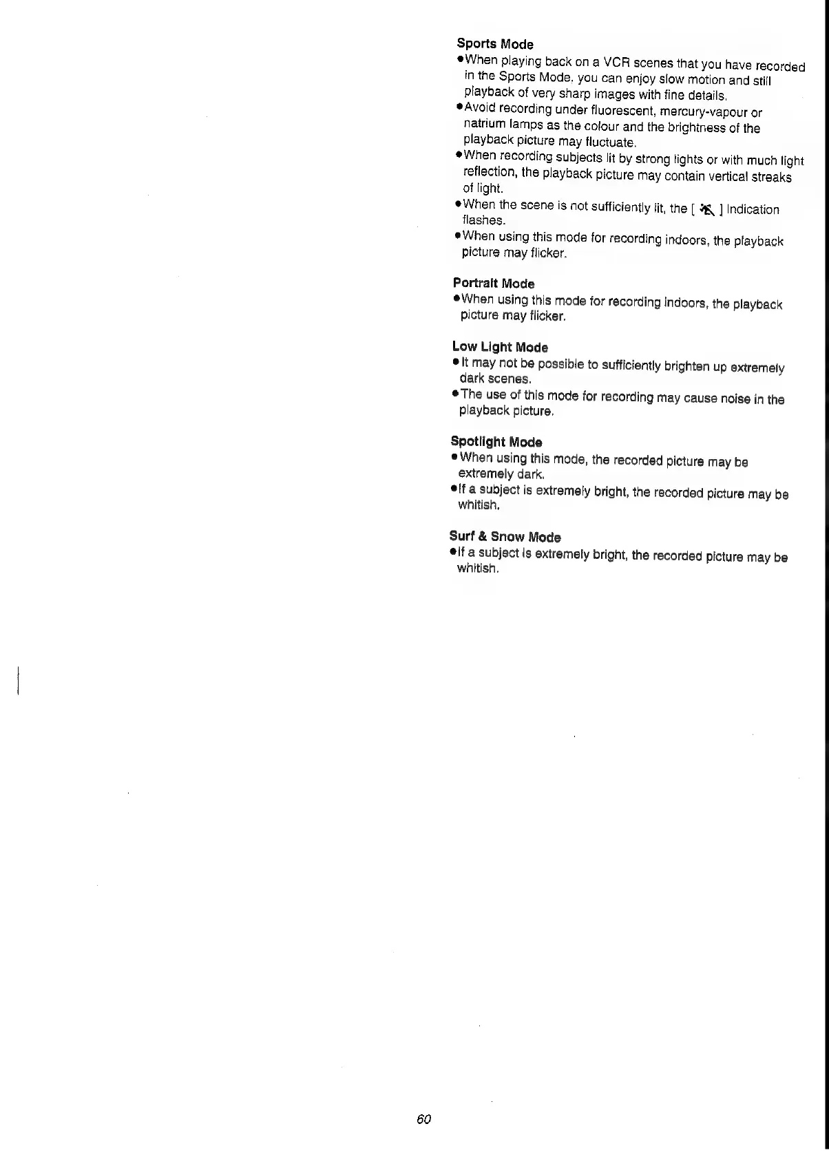Panasonic NV-VS3A - Programme AE Mode Details