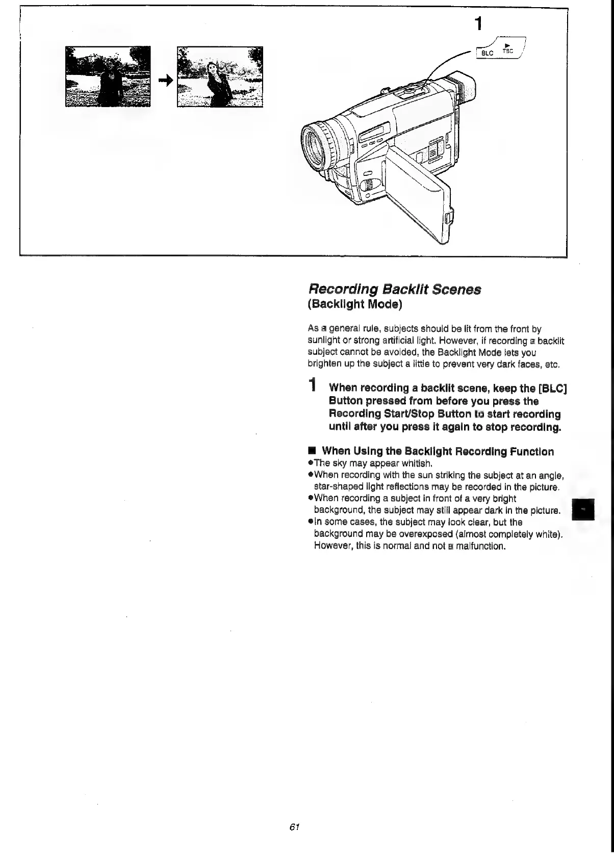 Panasonic NV-VS3A - Backlight Mode