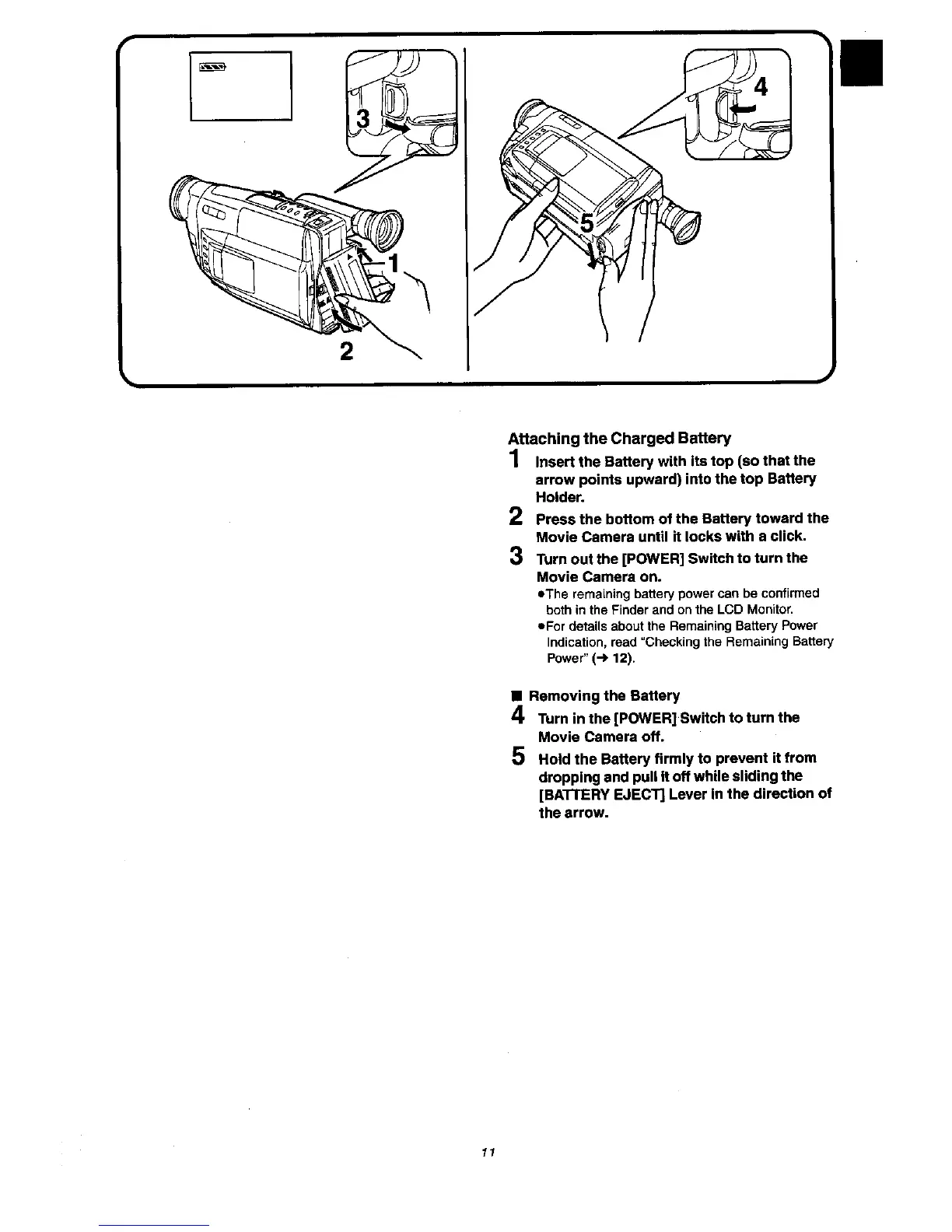 Panasonic NV VX 27 - Attaching the Charged Battery